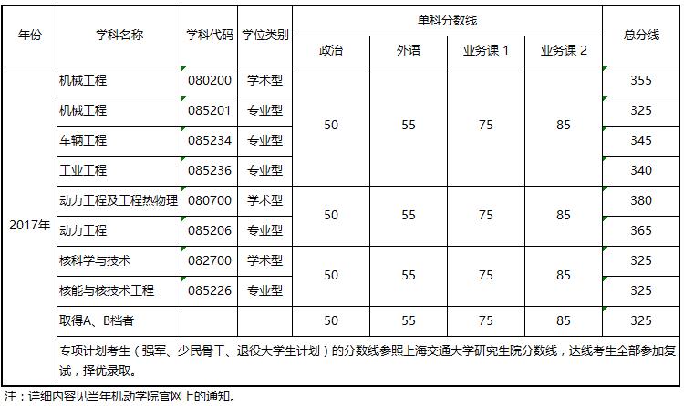 往年上海交大统考硕士生复试基本分数线