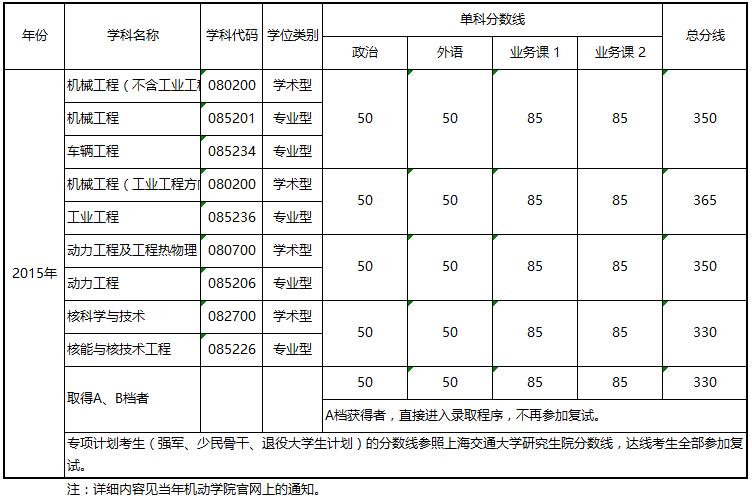 往年上海交大统考硕士生复试基本分数线