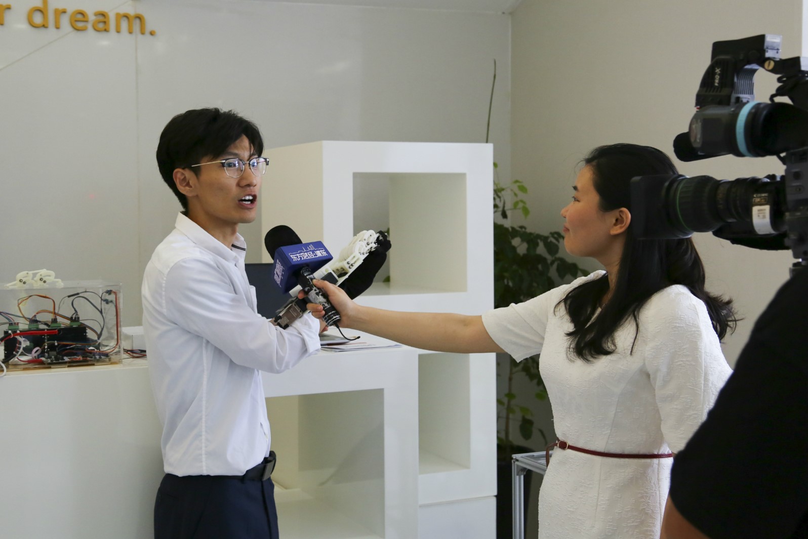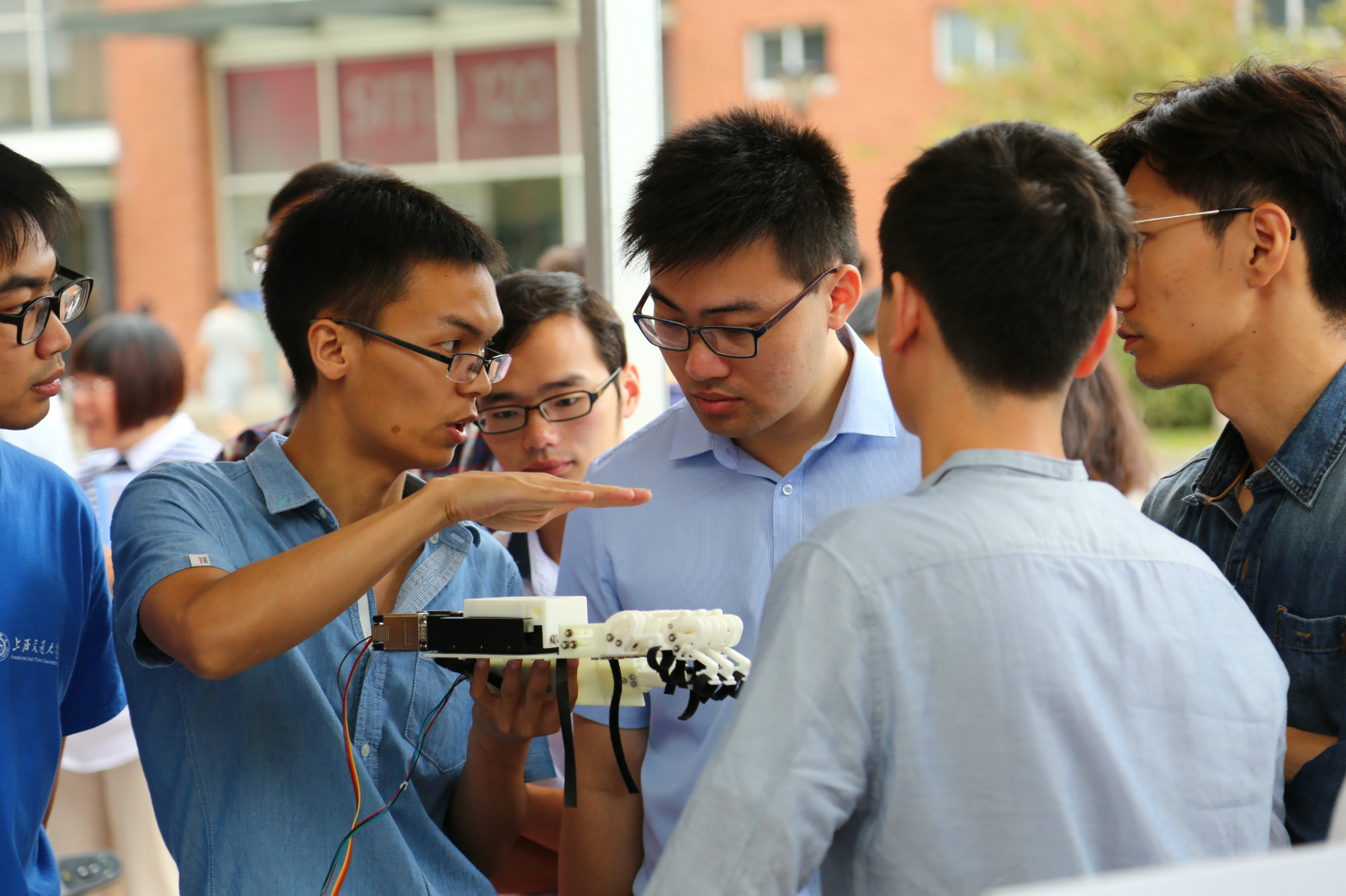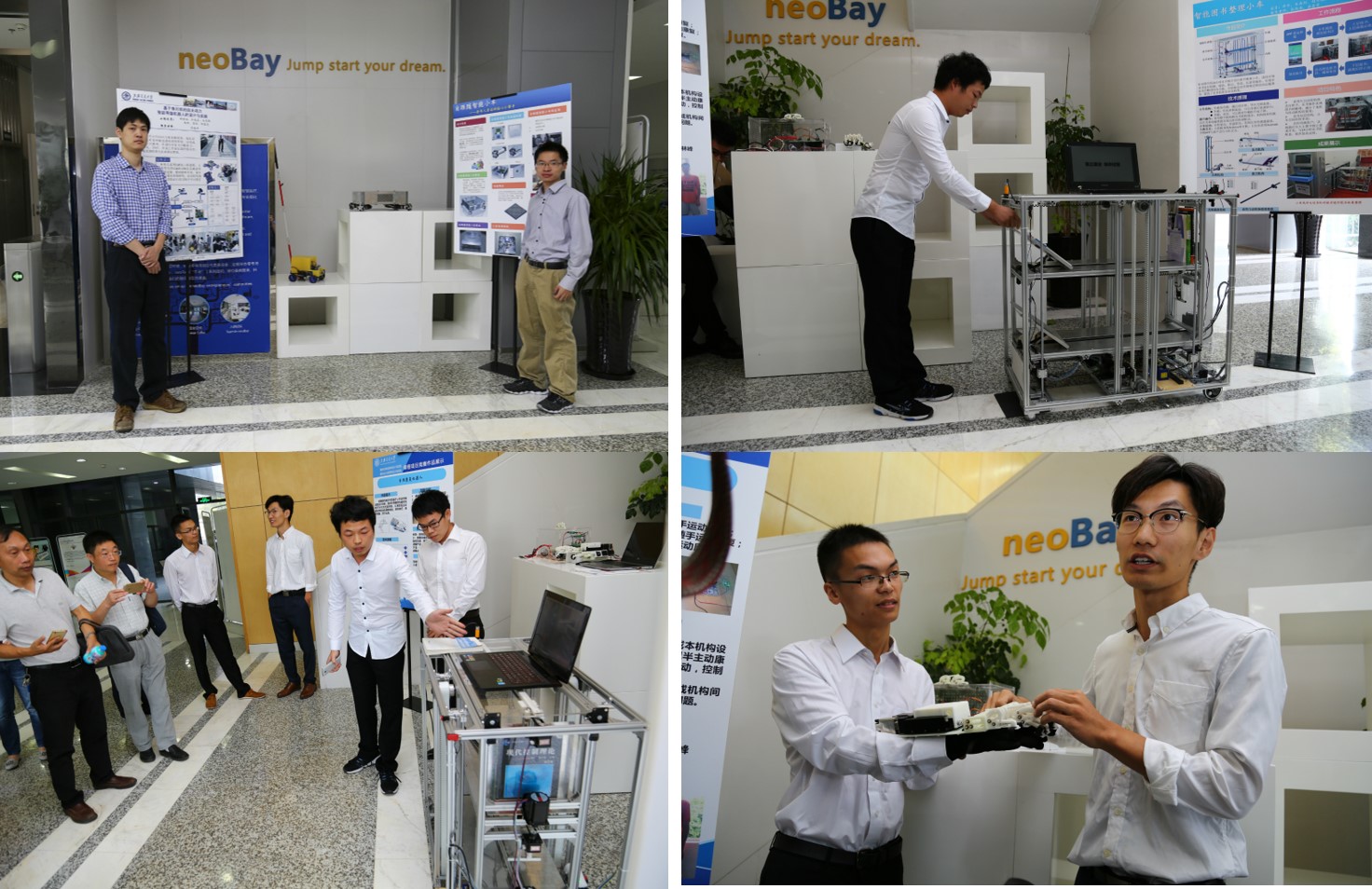 本次项目式实践课程竞赛,恰逢全国“大众创业、万众创新”双创活动周,课程竞赛中的部分获奖作品智能图书整理小车、手指康复机器人、智能导盲机器人、自跟随智能小车,应邀在2017年全国大众创业万众创新活动周“上海交大-闵行”专场活动中展示,beat365官网专业学位研究生学子的创新实践设计理念及作品吸引了社会各界的广泛关注。
