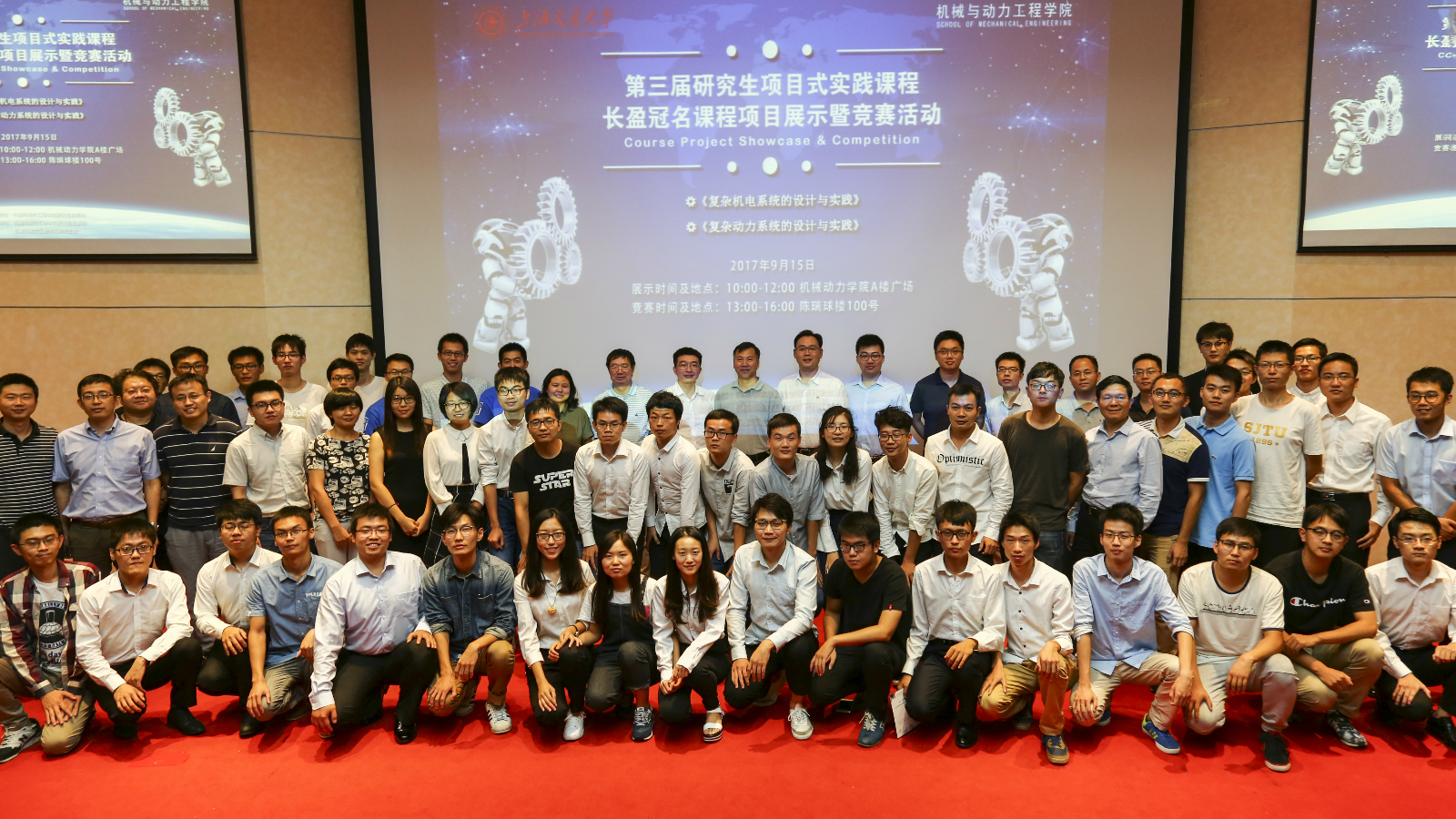 9月15日,机械动力学院成功举办了第三届研究生项目式实践课程展示暨竞赛活动。该活动由深圳市长盈精密技术有限公司冠名,并得到了上汽大众汽车有限公司、上海电气电站集团、苏州博众精工科技有限公司、马勒技术投资有限公司、ABB高压电机有限公司等企业的大力支持。