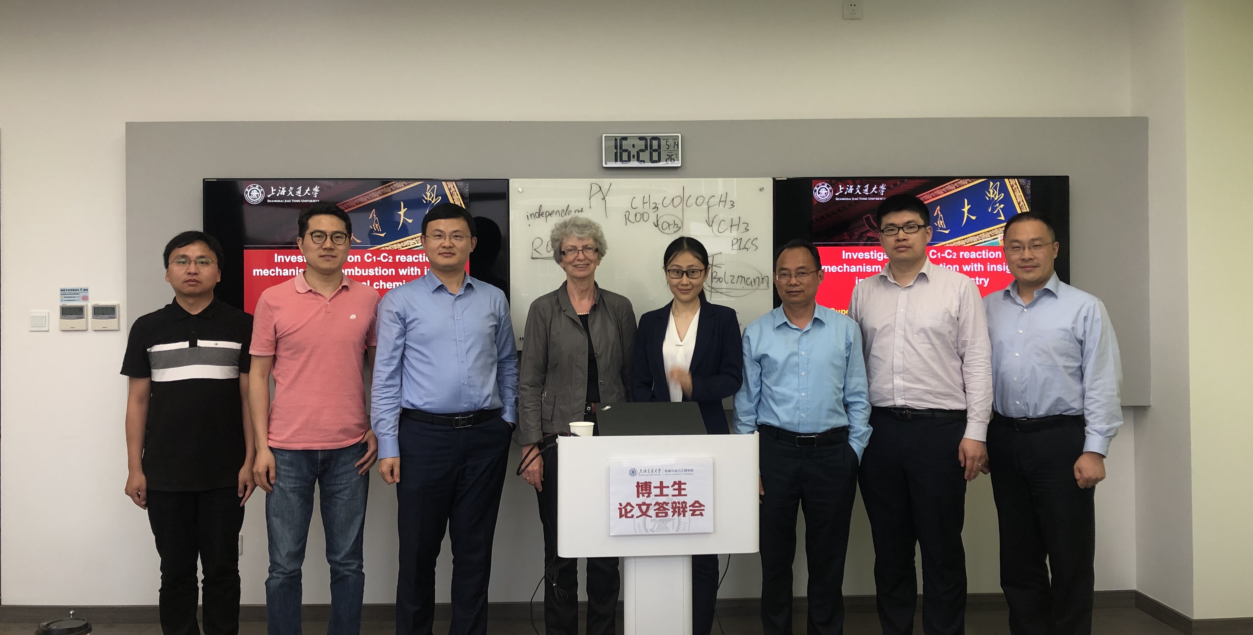 5月14日,beat365官网内燃机研究所2016级博士生张晓愿通过了博士学位论文国际答辩。答辩委员会由德国比勒菲尔德大学、清华大学、中国科学技术大学和beat365中文官方网站的教师组成。德国科学院和工程院院士、国际燃烧学会前任主席和2018年度Alfred C. Egerton金奖得主、2016年度国家国际科技合作奖获得者Katharina Kohse-Höinghaus教授担任主席并主持答辩。国际评审专家由Katharina Kohse-Höinghaus教授,国际燃烧学会候任主席和2016年度Alfred C. Egerton金奖得主、Combustion and Flame前任主编、法国国家科学研究院(CNRS)Philippe Dagaut教授,以及Proceedings of the Combustion Institute副主编、沙特阿卜杜拉国王科技大学(KAUST)清洁燃烧中心副主任Mani Sarathy教授担任。