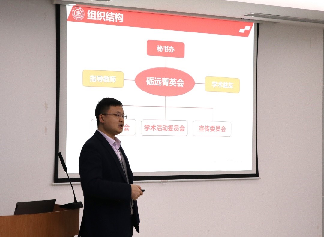 李玉阳介绍了砺远菁英会的建设背景,建设宗旨,建设目标,以及组织结构和成长历程,他指出,要凝聚全院博士生教育合力,培养博士生学术和行业领导力,培养学院博士生精英力量,建成一个富有朝气,充满活力的学术团体。