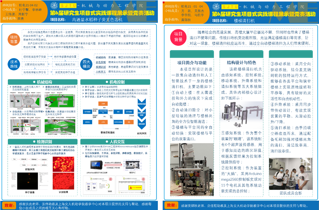 专业学位研究生项目式实践课程《复杂机电/动力系统的设计与实践》,自2013年设立至今,已形成了完善的教学大纲、实践平台和教学师资队伍,提高了学生的实践和创新创业能力,课程项目成果得到了社会和企业的认可。未来,项目式实践课程将深入挖掘和对接企业和市场需求,拓宽交叉学科项目设计,以创新竞赛等为任务式牵引,搭建学生创新产品孵化器,培育富有创新力及应用价值的高水平作品,进一步提升专业学位研究生的综合工程实践能力。