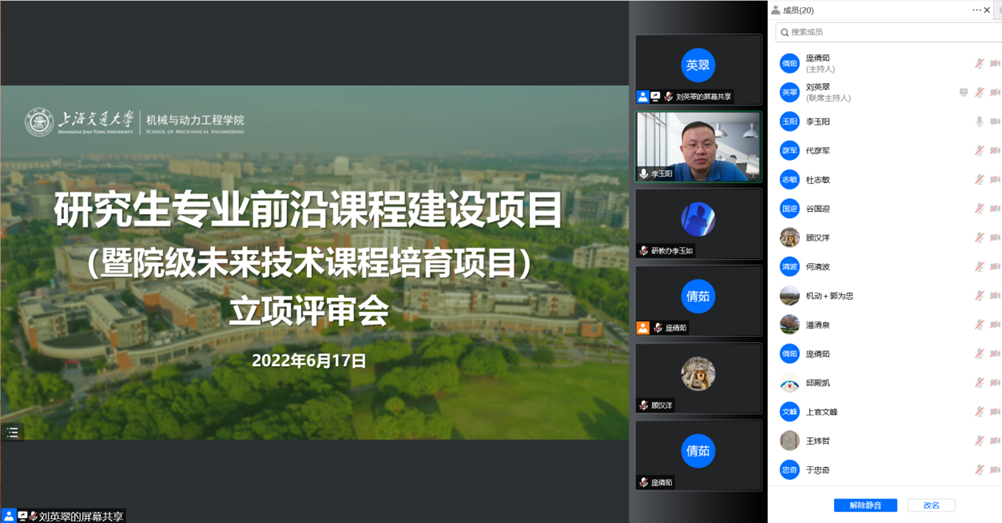 6月17日,学院举行研究生专业前沿课程建设项目(暨院级未来技术课程培育项目)立项评审会。学院副院长李玉阳,机械工程及自动化系主任朱利民、动力与能源工程系系主任代彦军、核科学与工程学院院长顾汉洋,研究生教学督导组组长上官文峰、副组长郭为忠,以及14位课程负责老师参与评审会。