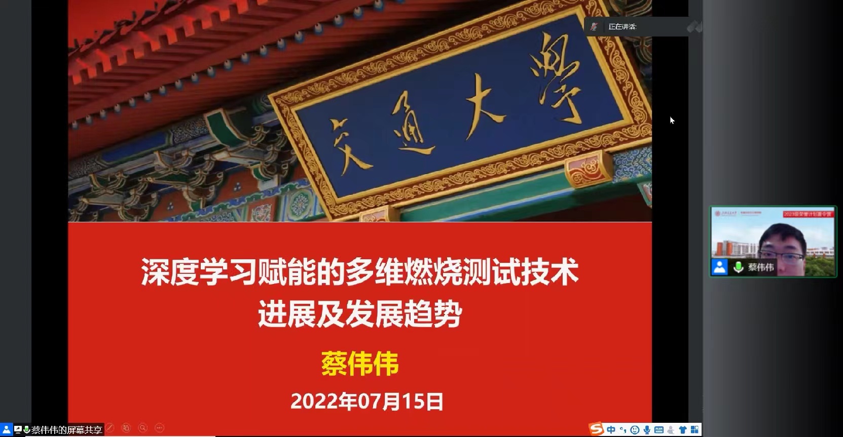 15日上午举行了师生学术交流环节与闭营仪式。师生学术交流环节,机器人研究所Peter B. Shull教授以“Wearable Systems for Biomedical Applications and Human Computer Interaction”为主题、智能汽车研究所所长张希教授以“新能源汽车动力电池自发型热失控预警技术”为主题、叶轮机械研究所蔡伟伟教授以“深度学习赋能的多维燃烧成像技术”为主题、新能源动力研究所朱磊教授以“面向碳中和的变革性技术-可再生合成燃料”为主题、核科学与工程学院刘晓晶研究员以“数字反应堆的发展与应用”为主题,为营员们带来了五场精彩的学术报告。闭营仪式环节进行了幸运抽奖,营员们踊跃分享个人参营感想,并表达了对学院老师及学长学姐的感谢,以及对未来交大博士生活的期待。