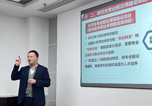 为激励引导学院师资对标“智能制造”和“双碳目标”等国家重大需求、紧跟专业发展前沿和未来技术趋势,突破研究生课程体系建设盲区,学院自2022年5月启动学院研究生专业前沿课程建设项目(暨院级未来技术课程培育项目),已立项8门一期课程,于10月启动二期申报工作,并拟于11月底举行二期立项评审工作。学院拟通过三期的建设培育和系列工作坊交流,于2024年在智能制造、人工智能及大数据、智慧能源、碳中和、氢能、储能等专业发展前沿完成一批专业前沿课程的布局建设,将专业前沿课程建实建好,以期提升研究生课程质量内涵,进一步支撑服务学科发展和高层次人才培养。
