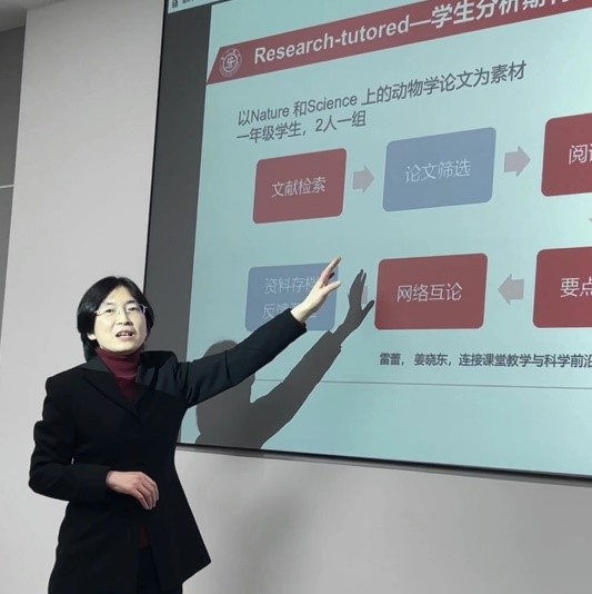 随后,邱意弘做《研究型学习》主题培训,从研究型学习的特点与意义、研究型教学联接研究与教学、研究型学习的设计与实施等方面进行展开,为工作坊与会教师带来了精彩的培训报告。