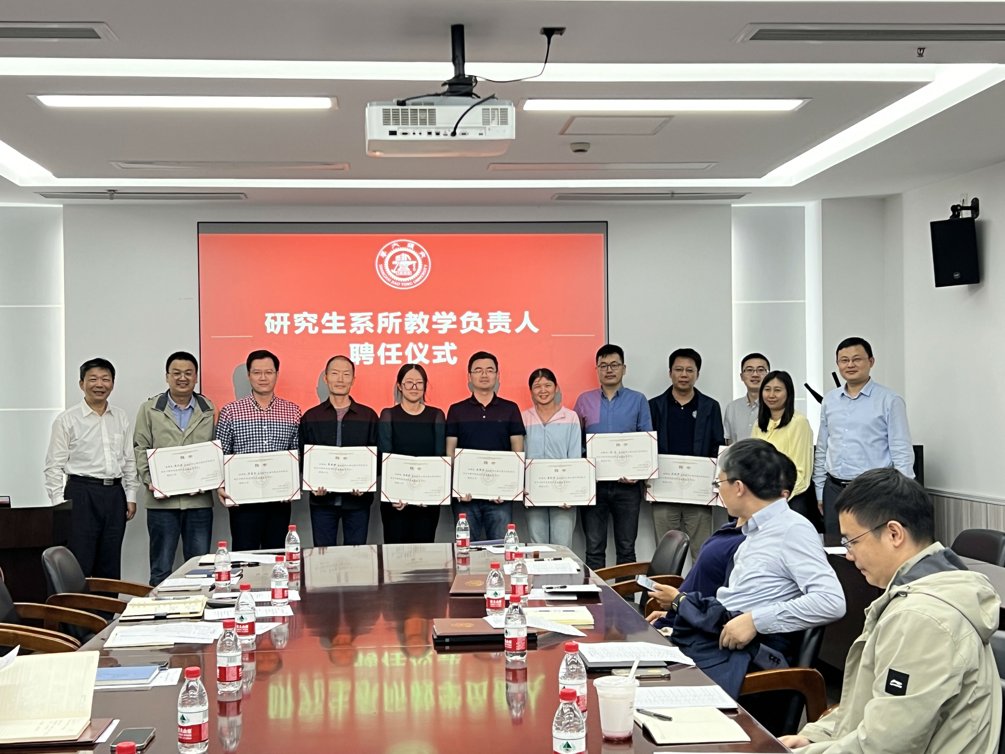 系所研究生教学负责人聘任仪式,杜朝辉和李玉阳向张敬伟等20余位系所研究生教学负责人颁发聘书。
