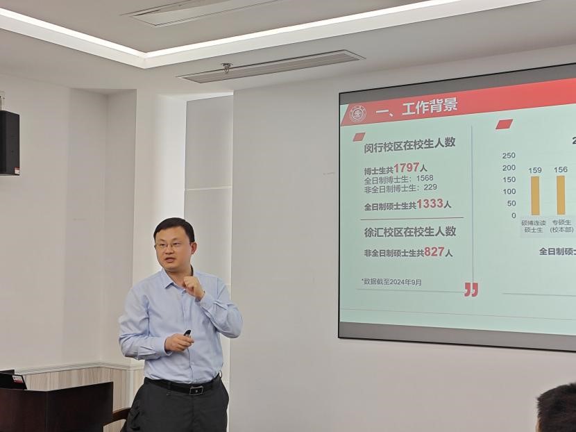 李玉阳面向系所研究生教学负责人开展培训,分析了学院博士生培养过程管理由“主体学院组织、荣誉体系自治”优化为“系所学术自治”的变化,介绍了系所教学负责人管理办法和工作职责,对2024秋季学期博士生系所统一开题和统一年度考核工作的组织事务进行了详细解读,并与参会系所教学负责人进行了深入的讨论交流。