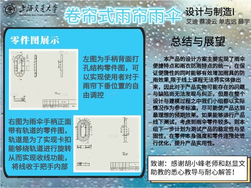 2、完成了雨帘雨伞主要功能的实现方案构想以及3D建模绘图,包括: