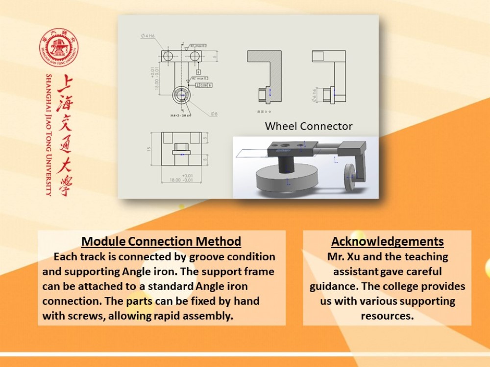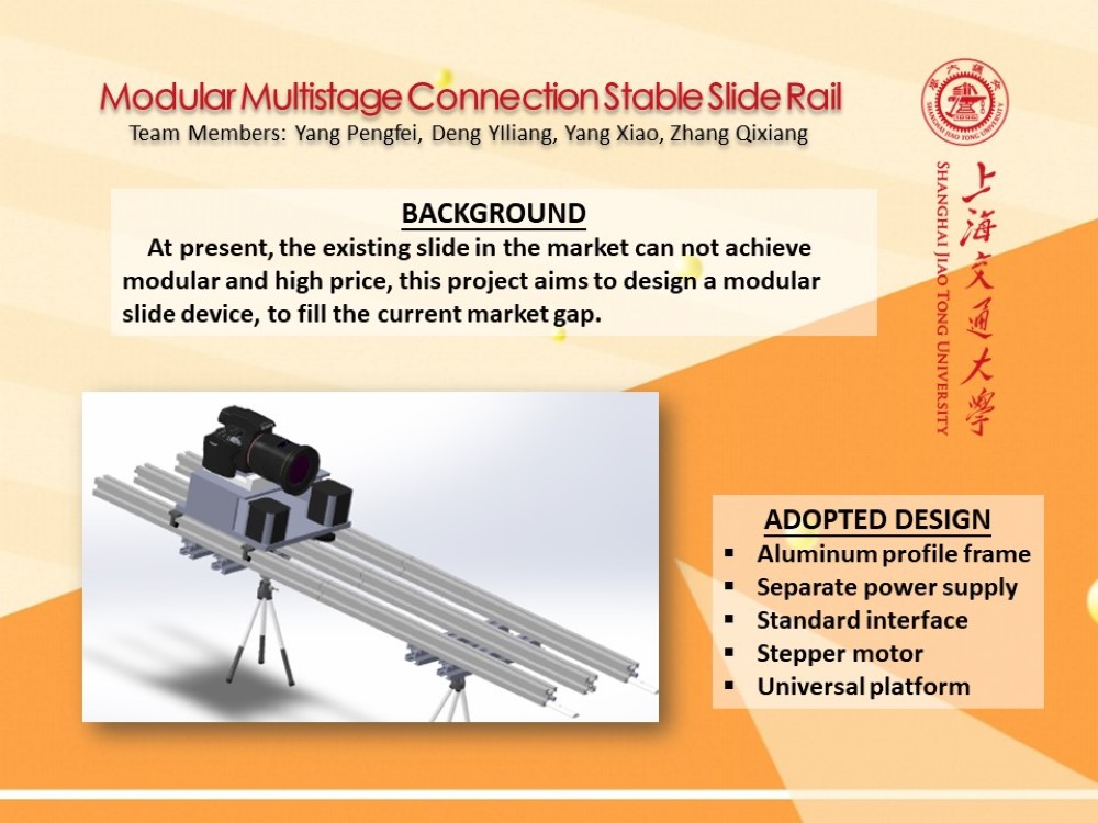 The slide rails that can be purchased on the market cannot be modularized. When the slide rails are needed, they usually need to be customized. The customized price is high, and the maintenance and replacement are very inconvenient. The service life is short. Therefore, our team designs a modular slide rail, which is connected by slot conditions and slots to realize the modularization of the slide rails, reducing the demand for customization and making the maintenance and replacement easier. At the same time, the power unit is installed on the driving platform to ensure the efficient operation of the slide rail.
