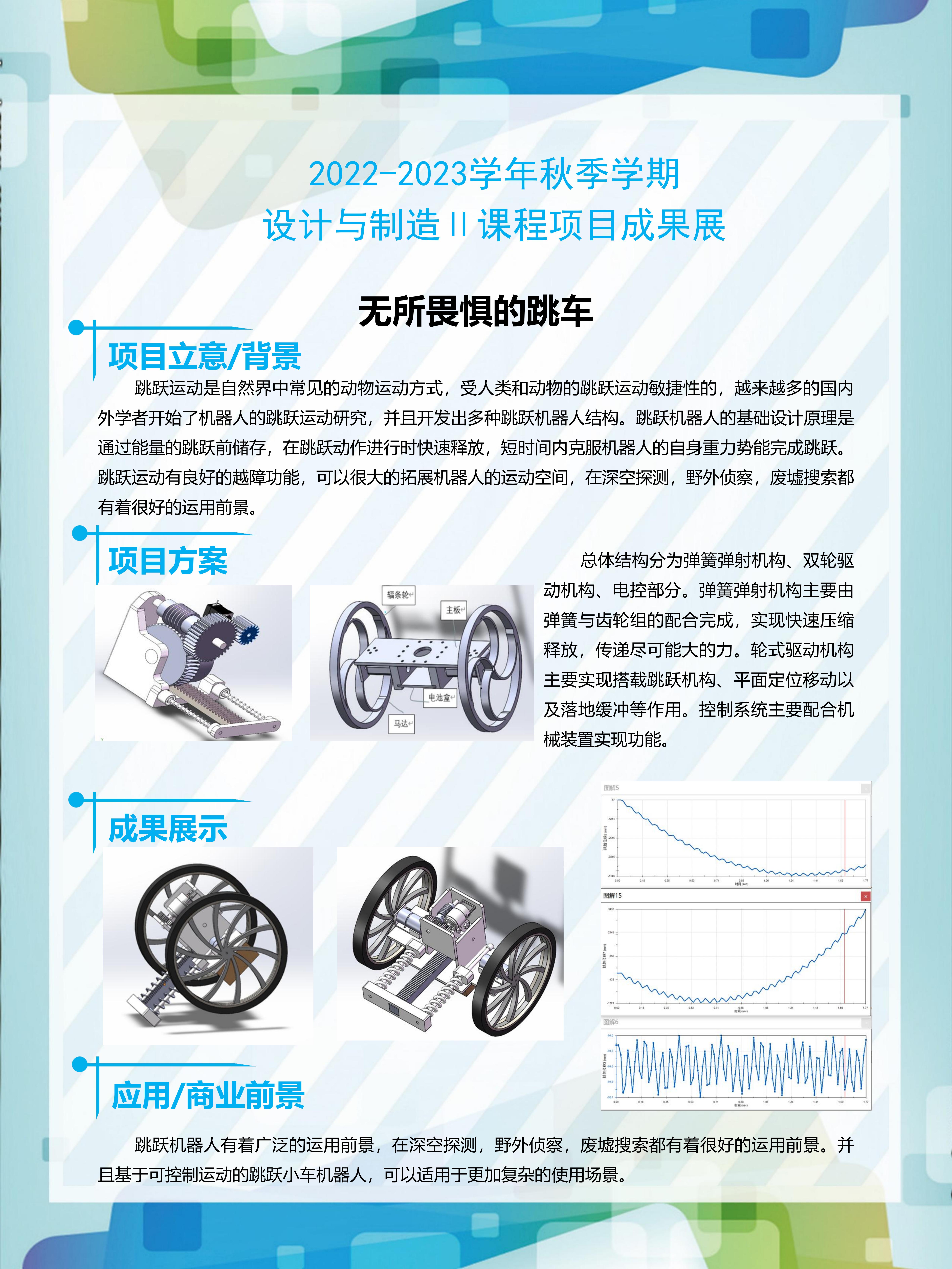 2. 使用仿真软件模拟了各机构的运动,并成功实现了总的跳跃运动的仿真,仿真结果满足跳跃高度、角度、时间的指标。