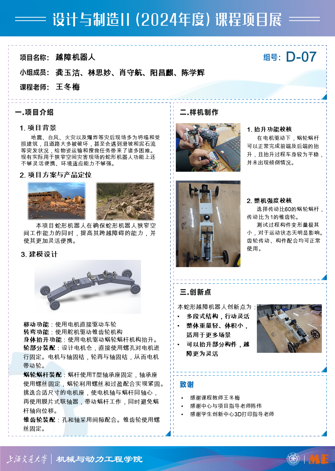 本项目蛇形机器人在确保蛇形机器人狭窄空间工作能力的同时,提高其跨越障碍的能力,并使其更加灵活便携。