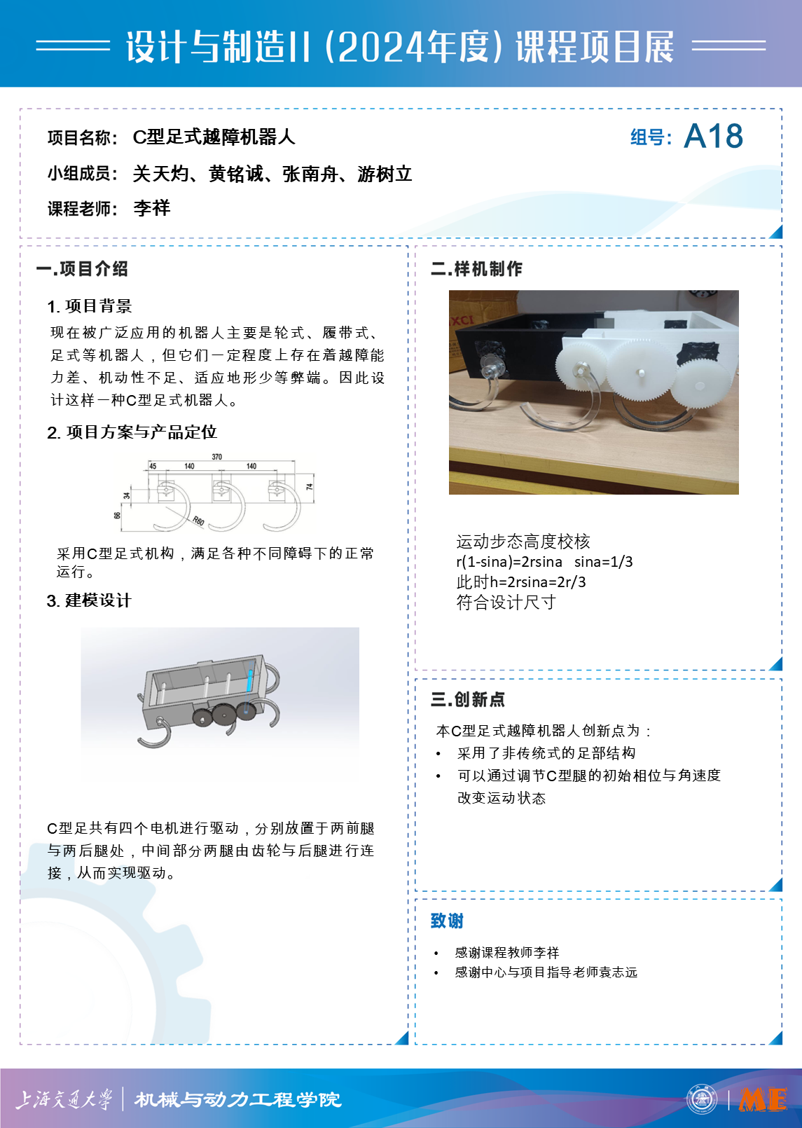 本C型足式越障机器人创新点为: