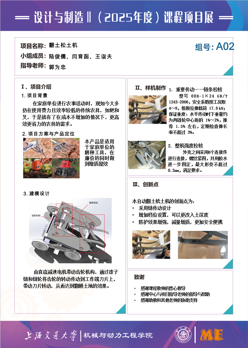 翻土松土机实现了电机启动后的平稳运行,刀片工作深度超过10cm,负载转速达到170r/min,成本控制在三百左右,基本可以实现目标。