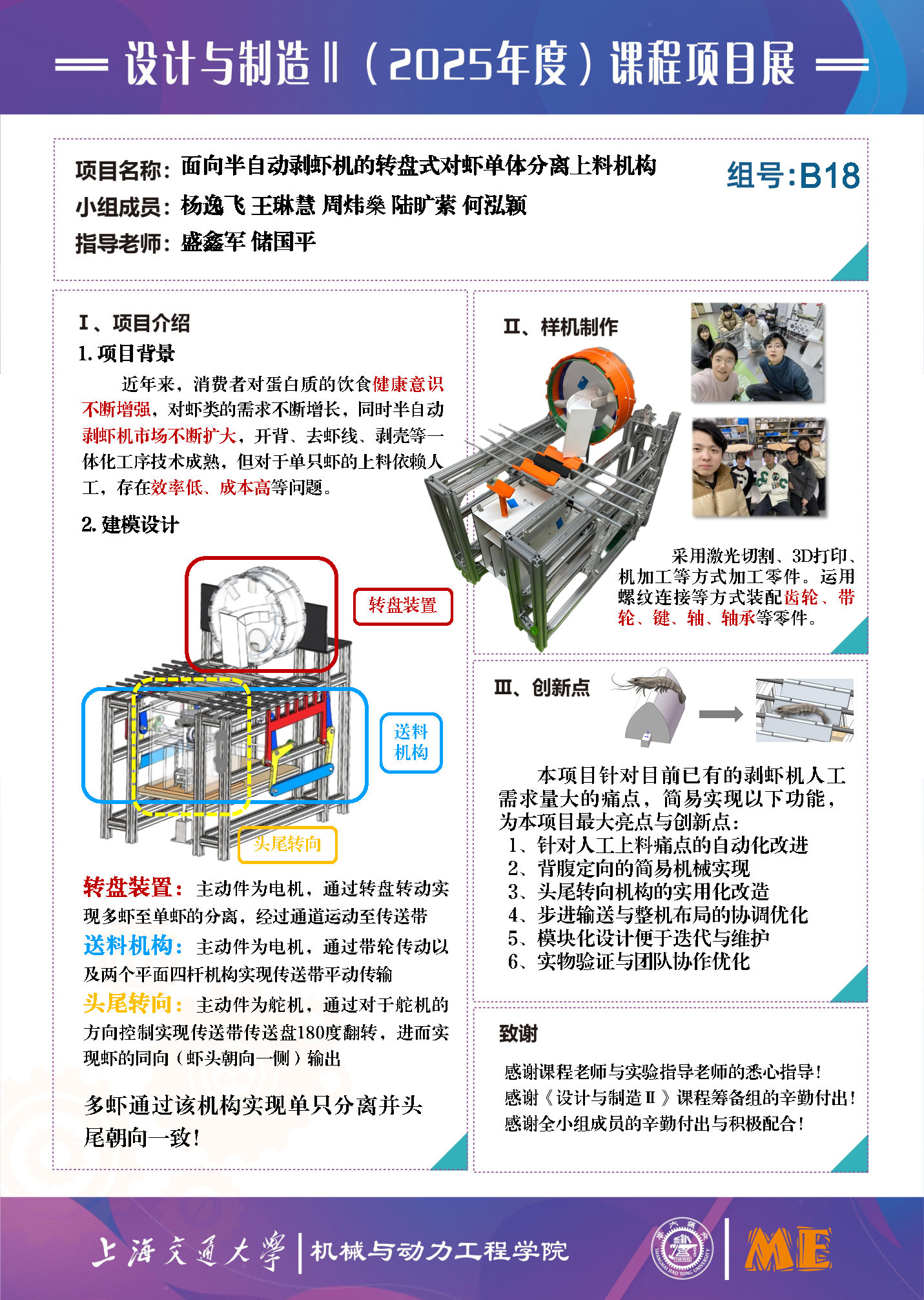 转盘装置:主动件为电机,通过转盘转动实现多虾至单虾的分离,经过通道运动至传送带