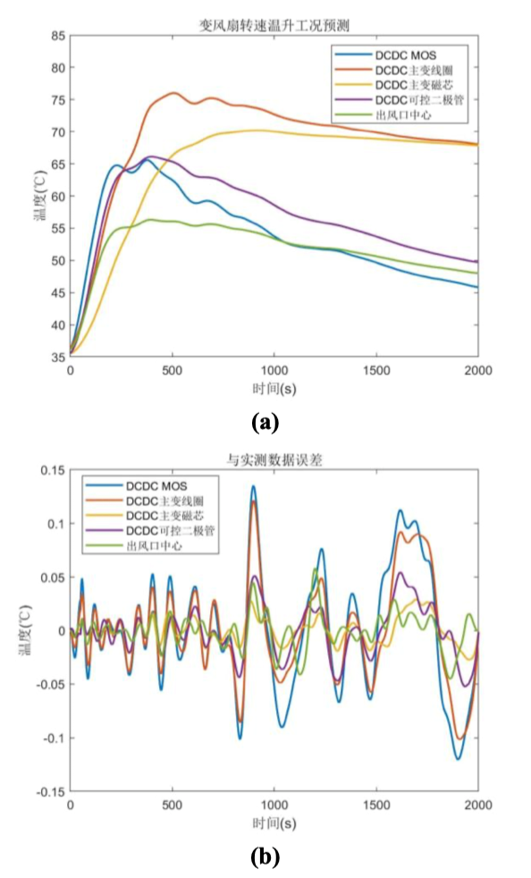 为了较为精确地预测充电模块各工况下的温度分布,建立风扇转速控制对器件温度分布的影响关系,论文围绕热阻网络模型建立以及热网络参数辨识展开了研究,基于传热学原理推导出节点间的热传导关系,建立了节点间的 RC 热网络模型。论文将各种新型数据驱动方法引入复杂系统的热网络辨识中,避免了传统热模型建立中复杂的计算推导和仿真模拟,可达到更好的精度,有助于风扇转速的合理控制,降低噪声、延长使用寿命。