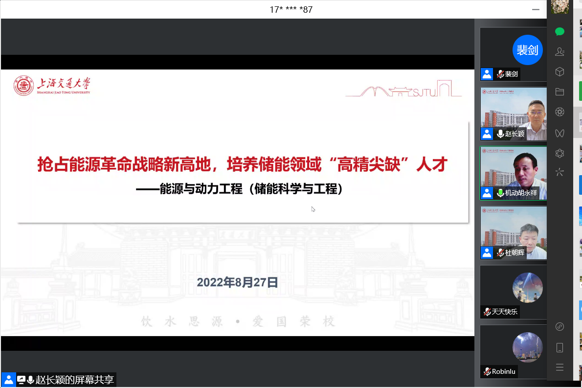 近日,学院面向2022级理科试验班、自然科学试验班、工科试验班等专业本科生,开展“能源与动力工程(储能科学与工程)”专业方向选拔和专业宣讲系列活动。9月3日顺利完成专业面试选拔工作,经面试综合考查选拔录取30名学生。专业面试和优秀生源选拔工作得到多位能源方向相关领域的教师支持。