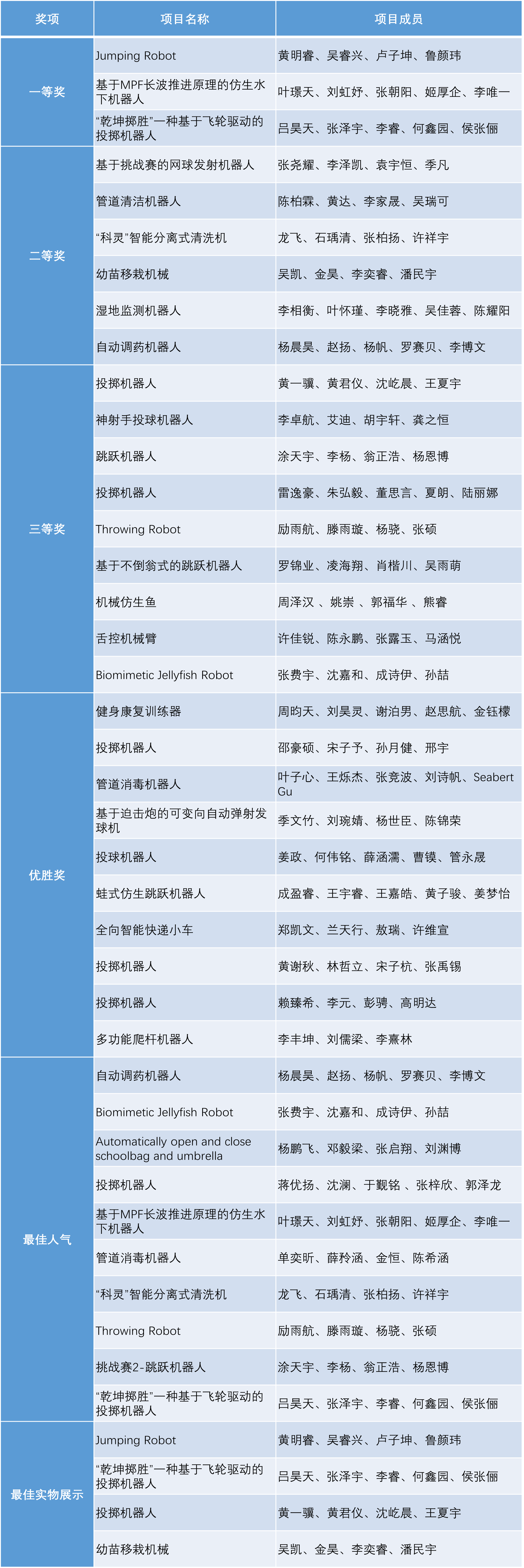 “设计与制造II”课程项目展获奖名单: