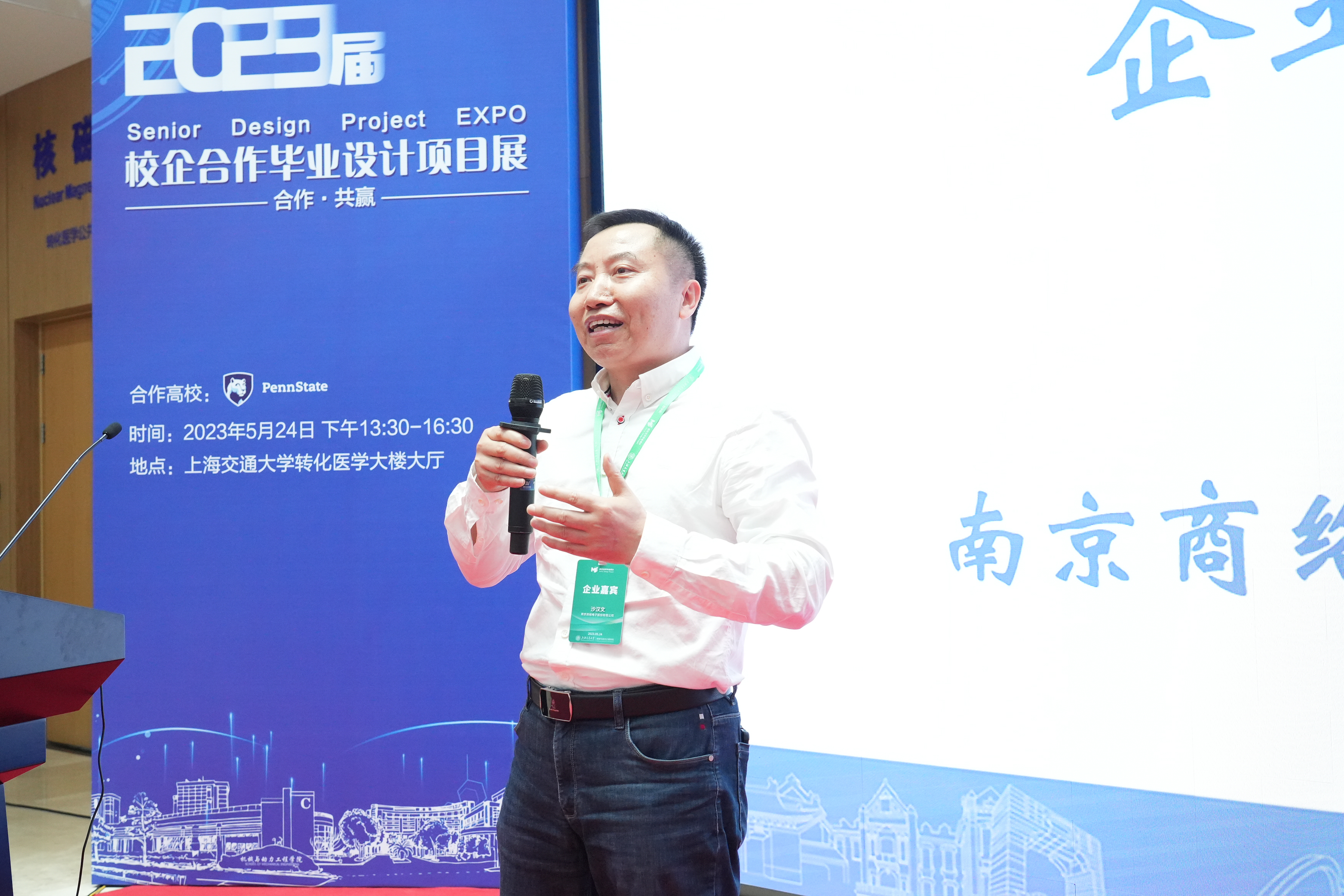 南京商络电子股份有限公司沙汉文作为资助企业代表发言,表示此次项目展展现了交大学子们强大的思辨能力和敢为人先的创新意识,希望与学院导师深度开展合作,将毕设项目持续更新迭代,更好地应用于实际的生产生活中。
