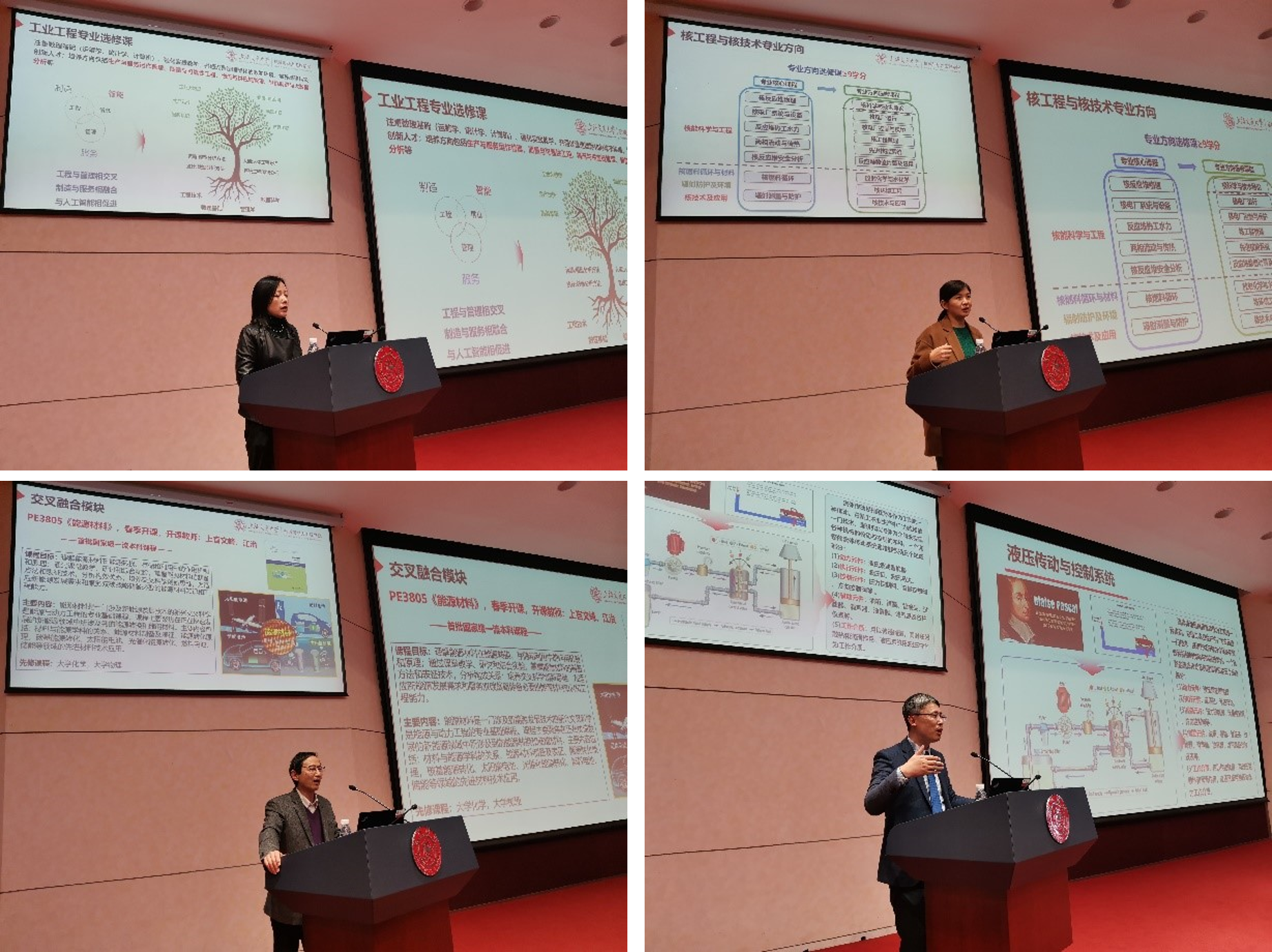 工业工程专业教学负责人陈璐、核工程专业教学负责人熊珍琴分别介绍了相关专业选修课课程体系及课程主要内容。上官文峰、陶建峰分别介绍了2024年春季学期主讲课程《液压传动与控制》、《能源材料》,包括课程设置的目标、主要教学内容及在行业中的典型应用案例等。年级组长戴雨吟介绍了新任2021级本科生思政教师团队、2024届学院本科生的毕业去向情况,还就考风考纪、征兵工作等作了说明。