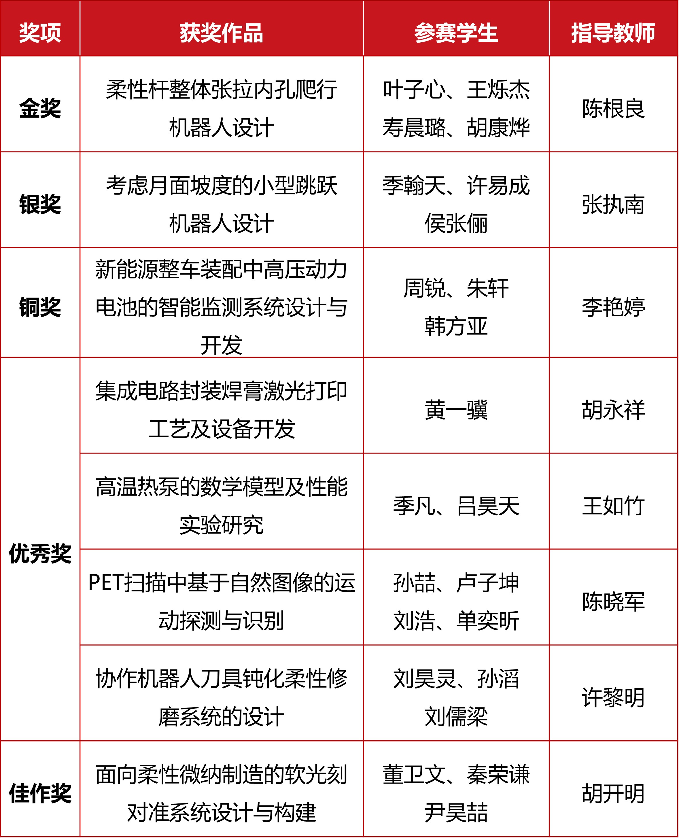 此次大赛由中国机械工程学会和机械行业卓越工程师教育联盟共同主办,是具有导向性、示范性的机械类专业毕业设计竞赛活动。大赛共有119所高校的1139项作品参赛,最终评选出个人和团体金奖各1项,银奖10项,铜奖24项,优秀奖作品60项。