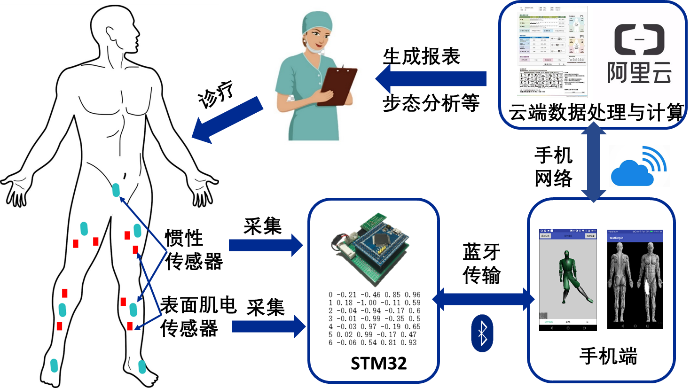 目前国内市场对运动康复的需求同康复资源之间的矛盾日益突出,主要集中于患者对医院高端仪器设备以及高端康复师的依赖,传统康复学科急需向数字化,智能化和远程化转型。本项目利用SENSOR+IOT+AI技术,利用传感器获取人体惯性参数与肌电信息,通过下肢四元数运动学建模实现人体姿态还原,结合人体关节参数自辨识与广义互补滤波算法实现误差矫正与标定,并搭建以LSTM神经网络为基础的评价系统,以手机端作为交互界面,同时建立云端管理与评价界面,实现一键生成步态分析报告,辅助医生进行远程诊断。