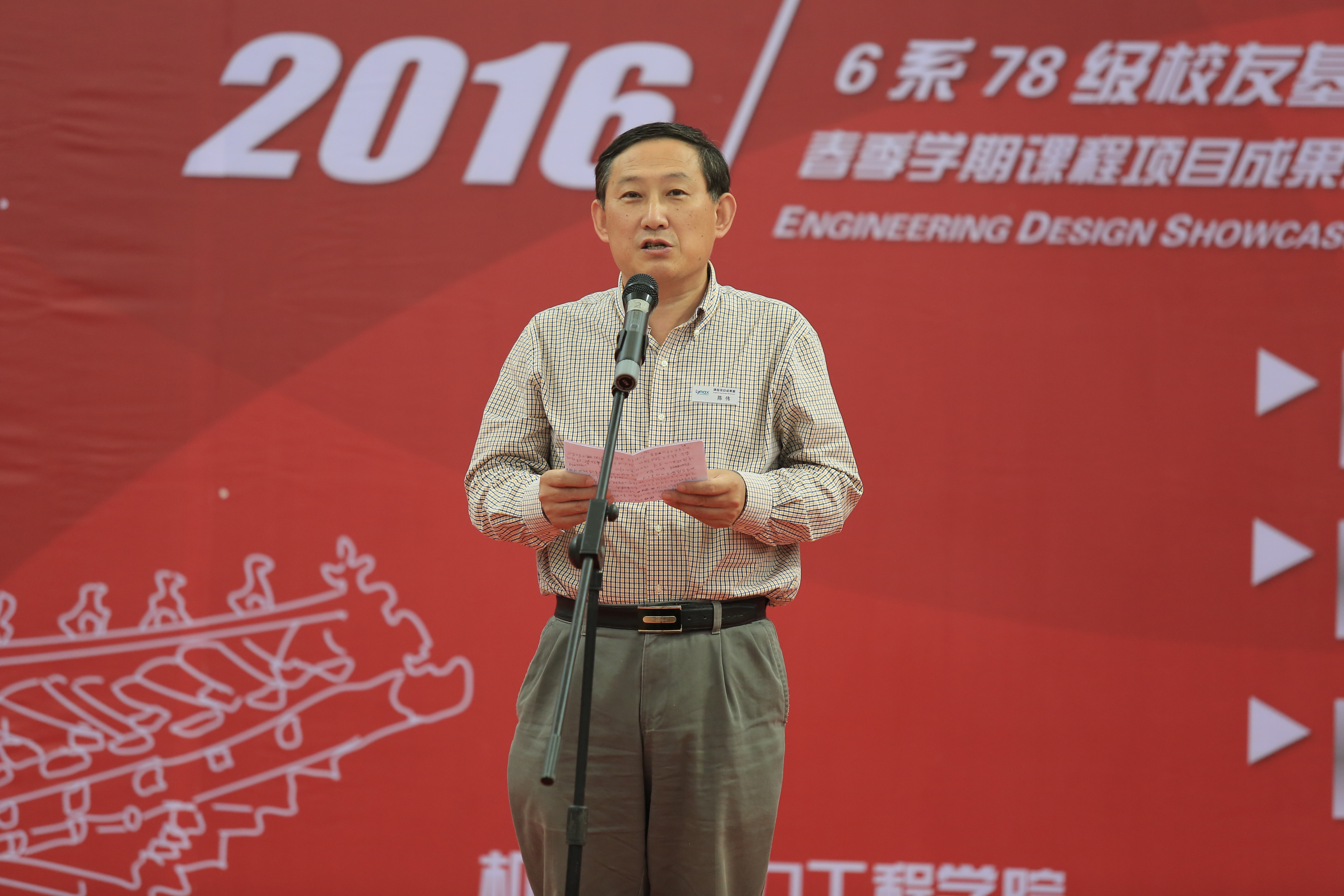 陈伟学长代表6系78级全体校友发表讲话,他表示校友们一直关注母校的发展,回馈母校是全体校友的心愿。他回顾了自己在交大的求学生涯中,打下了扎实的基础,使自己在后来的工作生活中受益匪浅。交大机动学院是培养优秀工程人员的摇篮,在抓好传统教育同时,大胆探索实践全新的教学模式,为工程教育的改革树立了榜样,可以提升学生的创新意识和综合工程能力,培养出更加符合社会发展需求的复合型人才。