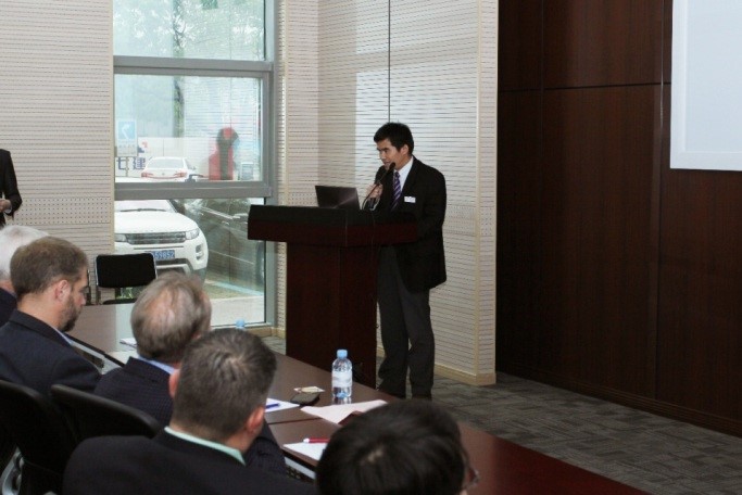 章俊良副院长致欢迎词。他表示,国际联合毕设项目作为一种新型毕业设计模式,是本科教学形式的一次创新。该项目紧密结合企业的研发需求,是本科生创新实践能力培养的改革方向。今年由学院本科生王顼琛、潘震宇和宾州州立大学Aaron McCandless等共同完成的国际联合毕业设计项目“弹筒式网络监控摄像头外壳设计(Design of a Bullet IP Camera Housing)”获得“洛克希德•马丁杯(Lockheed Martin)”优秀设计一等奖,这是国际联合毕业设计项目连续第二年在美国宾州州立大学的春季工程设计项目展中获得一等奖。章俊良对近几年学生在项目展中取得的成绩表示肯定,并对企业的大力资助表示感谢,他希望国际联合毕业设计项目能再接再厉、再创佳绩。