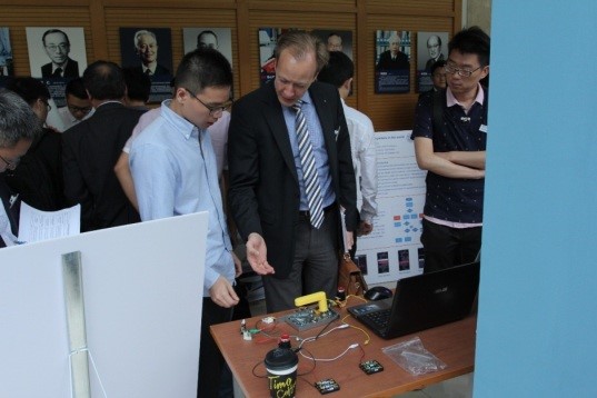 2016年6月1日,“2016SJTU-PSU/KTH国际联合毕业设计”项目展示会在beat365中文官方网站beat365中文官方网站举行,机械动力学院28名本科生的18项国际工程项目成果参与展示评选。美国宾州法尼亚州立大学、瑞典皇家理工学院教授代表,机械动力学院党委书记杜朝辉、副院长章俊良、国际毕设指导教师,以及WELLMASTER、Tyco等知名企业代表等参加了活动。