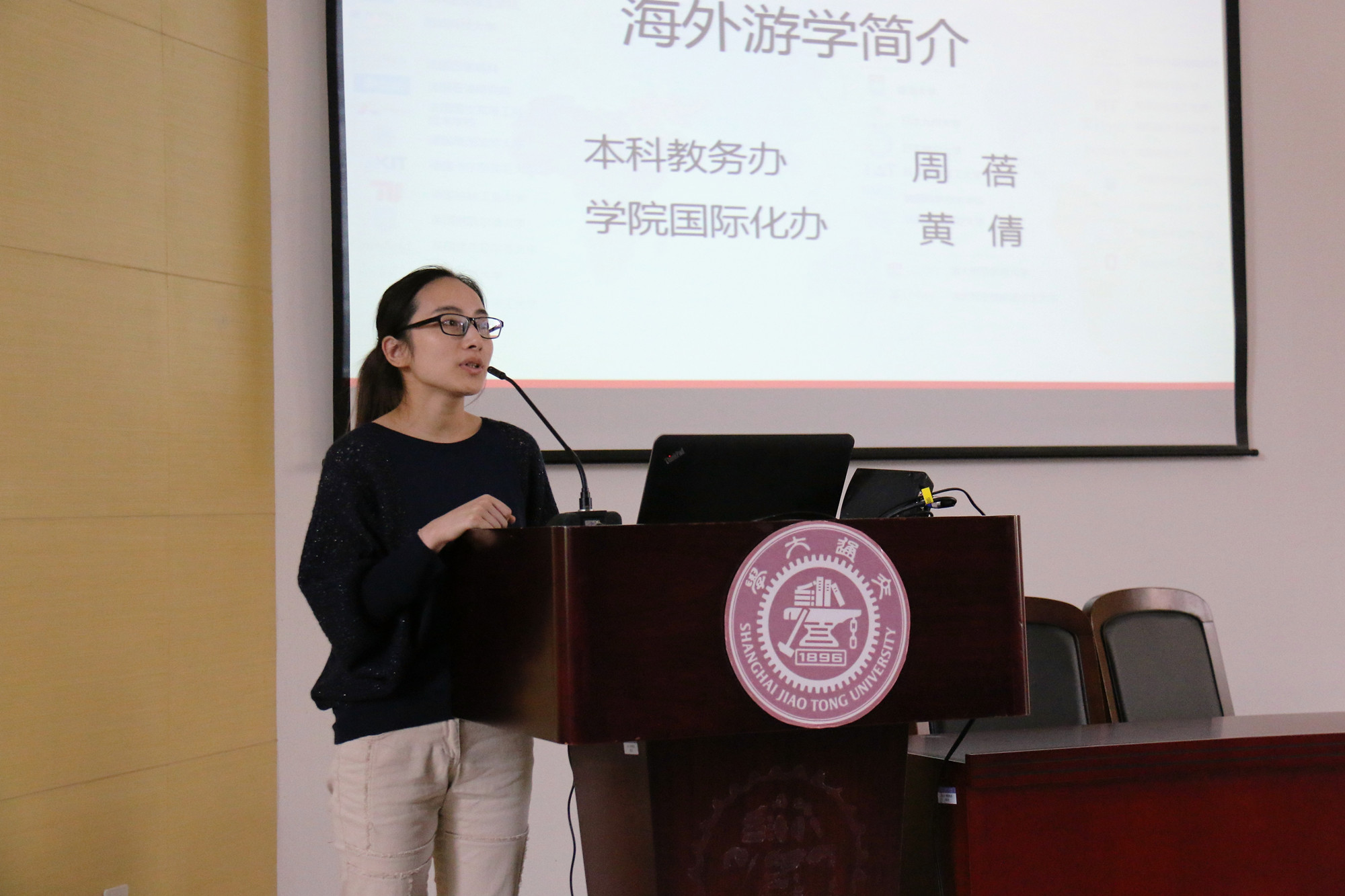 年级教务张杨向学生详细介绍了各专业计划录取人数、录取方式、专业分流流程、学生网上填报志愿方法等,还向学生公布了机械工程、热能与动力工程、工业工程、新能源科学与工程各专业负责人的联系方式,供学生填报志愿时进行咨询了解。本科教务办周蓓、国际化办公室黄倩介绍了校级院级的海外游学项目、申请流程及注意事项,包括学院针对大二、大三学生的学期、学年交流项目、2-2本科双学位项目、3+1+1本硕联合培养项目等等。