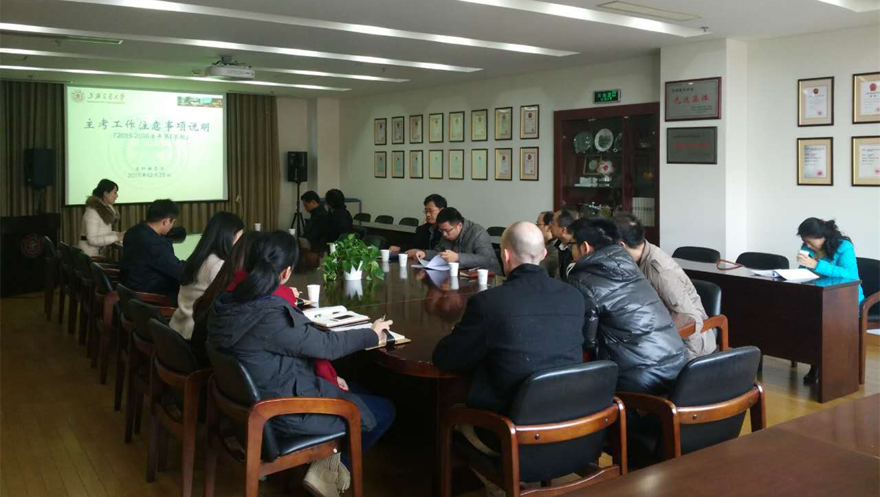 12月28日中午,2015-2016学年第1学期主考工作注意事项培训会在机械楼F210举行,学院本科教学院长章俊良、本科教务办主任吴艳琼、本科教务办教师及各年级任课教师参加了本次会议。