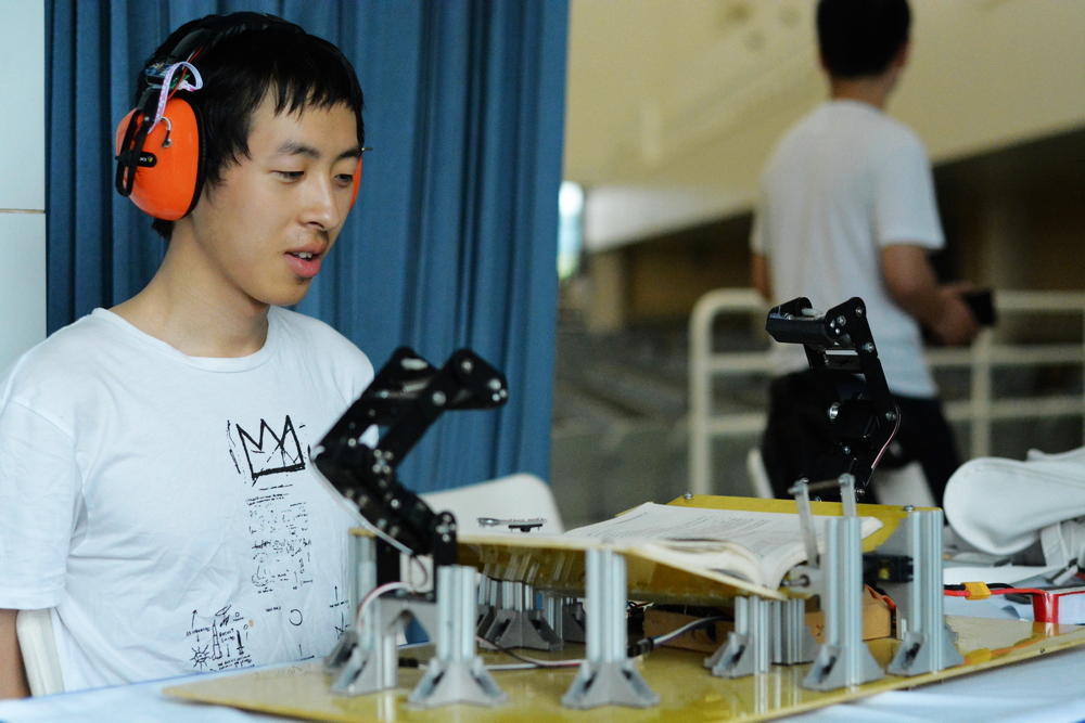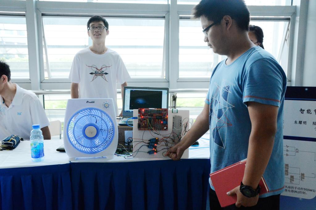 平价肘关节康复“神器”、省钱管家智能电扇、居家必备多功能头戴式控制器……这些奇思妙想近日都在beat365中文官方网站学子手中一一实现。6月14日,beat365中文官方网站2015年春季学期本科生课程项目成果展举行,共展出近千名本科生完成的《工程学导论》、《设计与制造I》及《工程设计》三门课程的217个课程设计项目。选题设计来自于校企合作项目、指导教师研究课题以及学生自选发明等。通过成果展示与校企专家评审的方式,让学生在展示过程中培养综合能力,在与专家及业界人士互动交流中激发创造力。