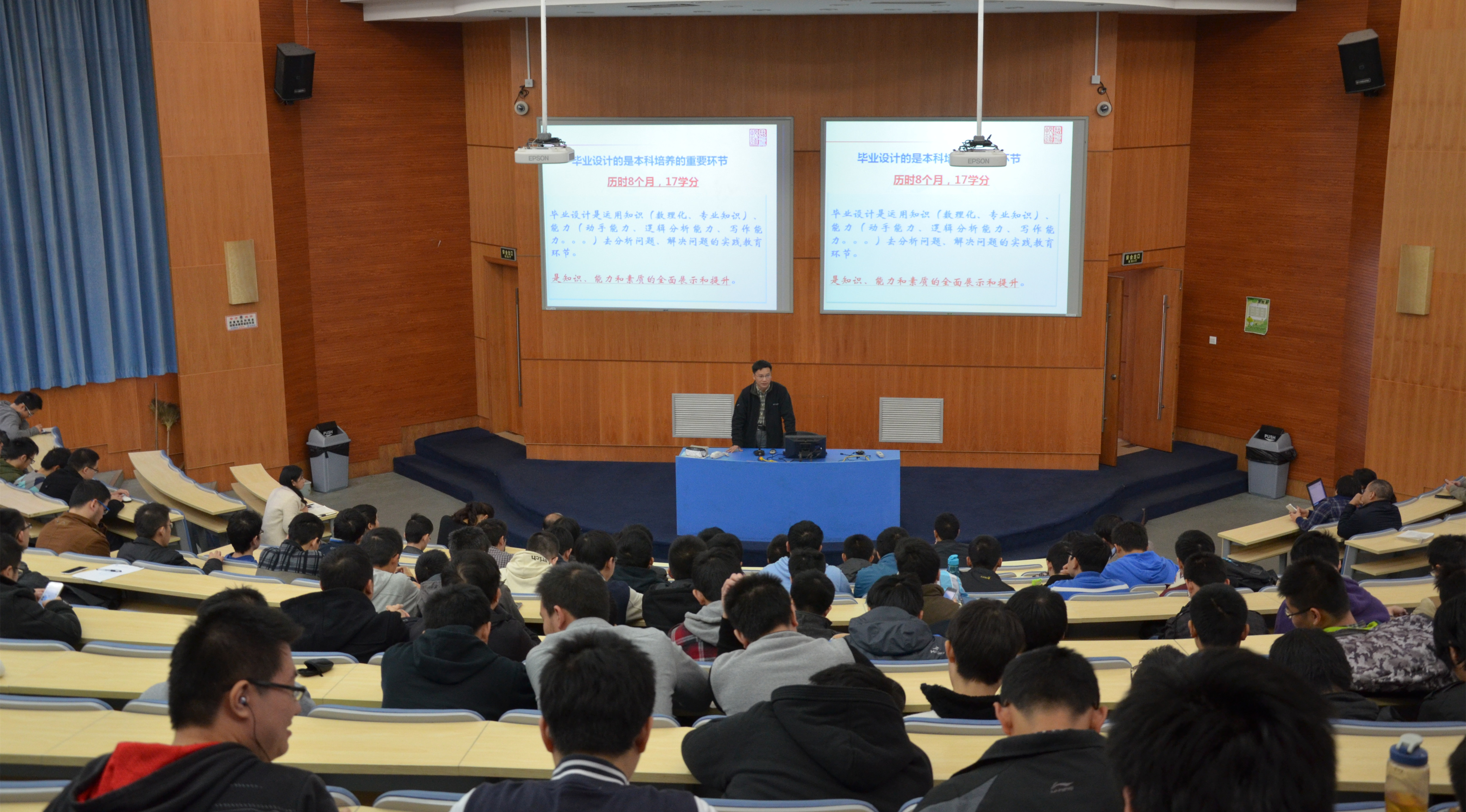 毕业设计(论文)作为本科生最后一个综合性教学实践环节,共17个学分、272学时;时间跨度长,工作内容实,涉及人员广。此次毕业设计启动大会的召开明确考核要求的同时鼓励学生尽早开始课题的研究,为2011级本科生毕业设计(论文)工作的圆满完成打下了坚实的基础。