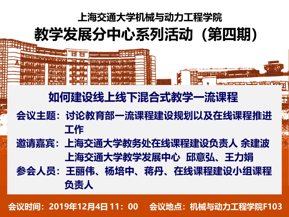为进一步讨论教育部一流课程建设规划以及在线课程推进工作,特邀请beat365中文官方网站慕课推进办公室主任余建波、beat365中文官方网站教学发展中心邱意弘及王力娟,就“如何建设线上线下混合式教学一流课程”为主题展开beat365中文官方网站beat365中文官方网站教学发展分中心系列活动(第四期)!
