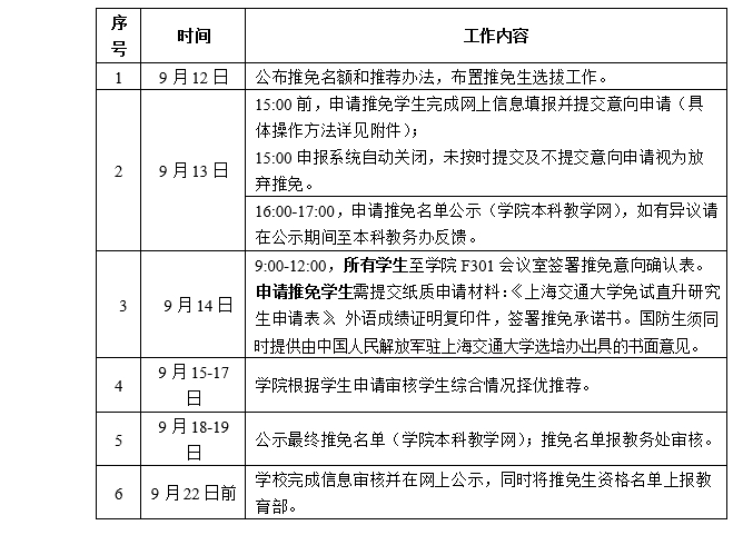 1、切实遵守推免政策,按照学校下达的名额推荐符合条件的优秀学生。