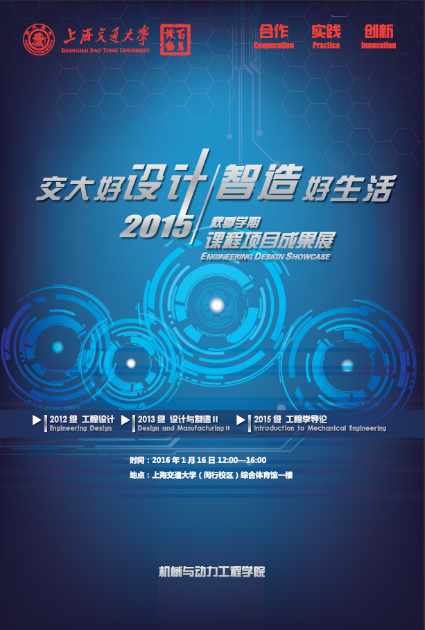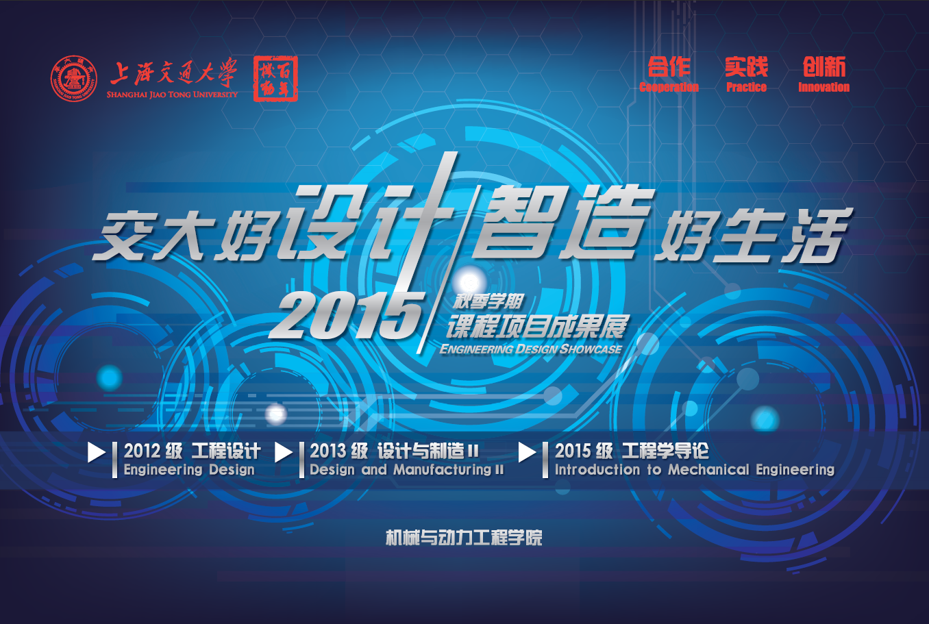 2012-2015年,学院已成功举办了四届项目成果展。为进一步推进校企产学结合的工程教育模式改革,提升学生的创新意识和综合工程能力,此次2015年秋季学期课程项目成果展将围绕“交大好设计,智造好生活”的主题,结合培养“智造”人才,助力“中国制造2025”的目标,展示学生创新思维与校企产学合作的工程教育模式改革成果,学生通过实践实际工程问题,创新意识和综合工程能力也得到逐步提升。