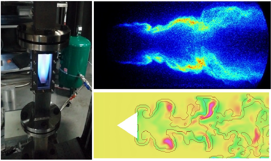 钝体尾迹流火焰动态特征的实验与仿真研究