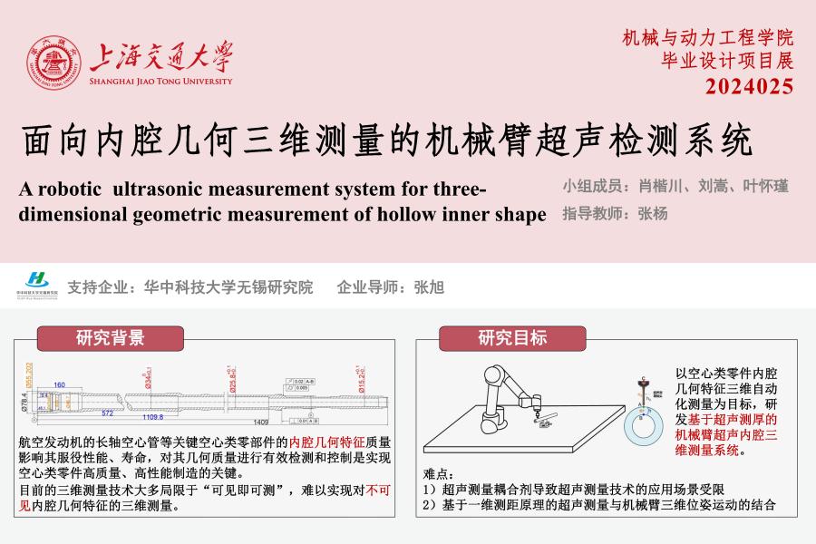 由于航空发动机空心叶片、长轴空心管等关键空心类零部件的内腔几何特征质量影响其服役性能、寿命,对其几何质量进行有效检测和控制是实现空心类零件高质量、高性能制造的关键。目前的几何三维测量技术,大多局限于“可见即可测”,难以实现对不可见内腔几何特征的测量,而超声测量与常规三坐标测量技术结合后具有实现内腔几何特征三维测量的潜力。因此本项目围绕内腔三维几何测量的相关问题,开展了机械臂超声检测系统的相关研究。
