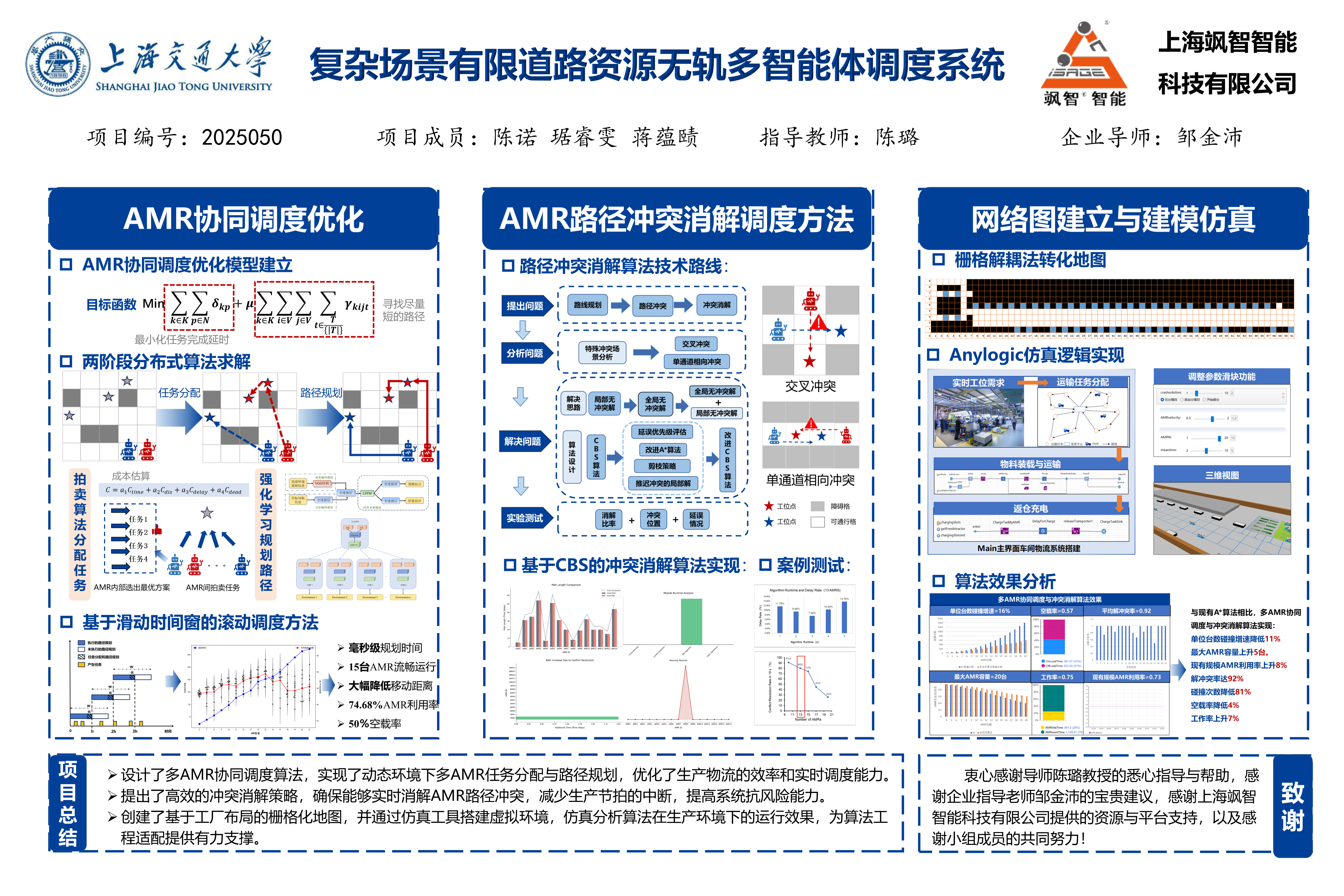 3. 通过仿真测试,评估算法有效性、适应性和鲁棒性,推动算法落地应用,为智慧工厂物流方案定制提供高效解决方案。