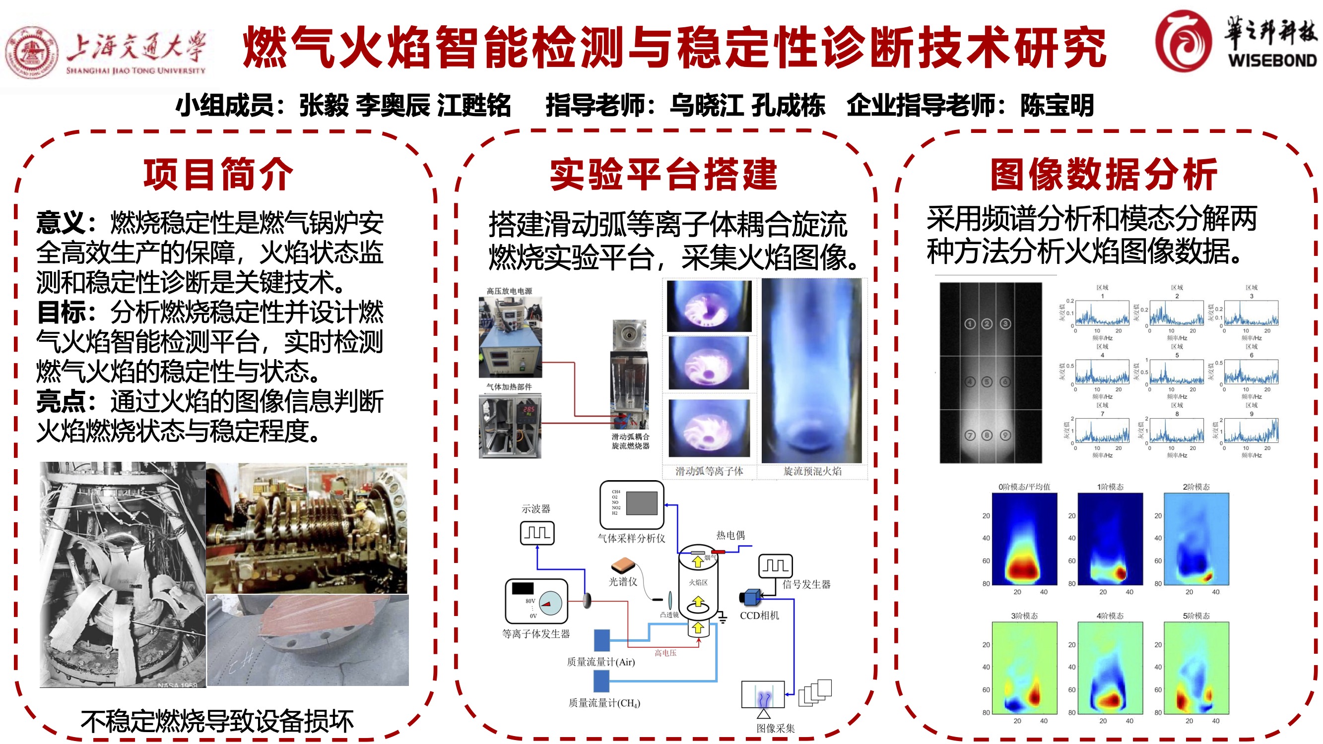完成燃烧与光学诊断实验平台搭建与测试;通过不稳定激励源诱导燃烧不稳定捕捉不同外扰条件下火焰传播与发展规律,分析典型的燃烧不稳定现象,针对现有机制在解释燃烧稳定性方面的不足提出改进方法;构建针对三维火焰的光学虚拟相机模型,通过改变虚拟相机的焦距、光圈、景深等参数,获得外部光源干扰条件下不同空间分辨率、相机观察视角的三维火焰投影图像;针对不同燃烧状态提取特征并进行量化分析,实现燃烧模态分类与分区,输出火焰不同燃烧模式分区、特征参数分布;对火焰图像/光谱特征的数据结构、深度学习框架和参数等进行全方位优化,改进识别算法,实现复杂燃烧特征的快速可视化。