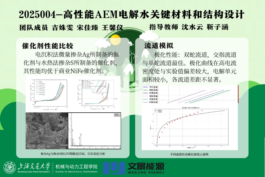 本项目以降低绿氢生产成本和提升技术竞争力为核心目标,围绕AEMWE技术开展高性能非贵金属催化剂的开发与优化。通过电沉积法与水热法制备多金属掺杂催化剂,提升其活性与稳定性,降低材料与运行成本。同时,构建高精度仿真模拟模型,优化电解槽结构与操作参数,减少实验试错,提升效率。结合文献调研与现有模型分析,识别AEMWE系统中的关键问题,明确性能提升方向,力求在实现经济性、环保性与安全性的基础上,推动绿氢技术的大规模商业应用。