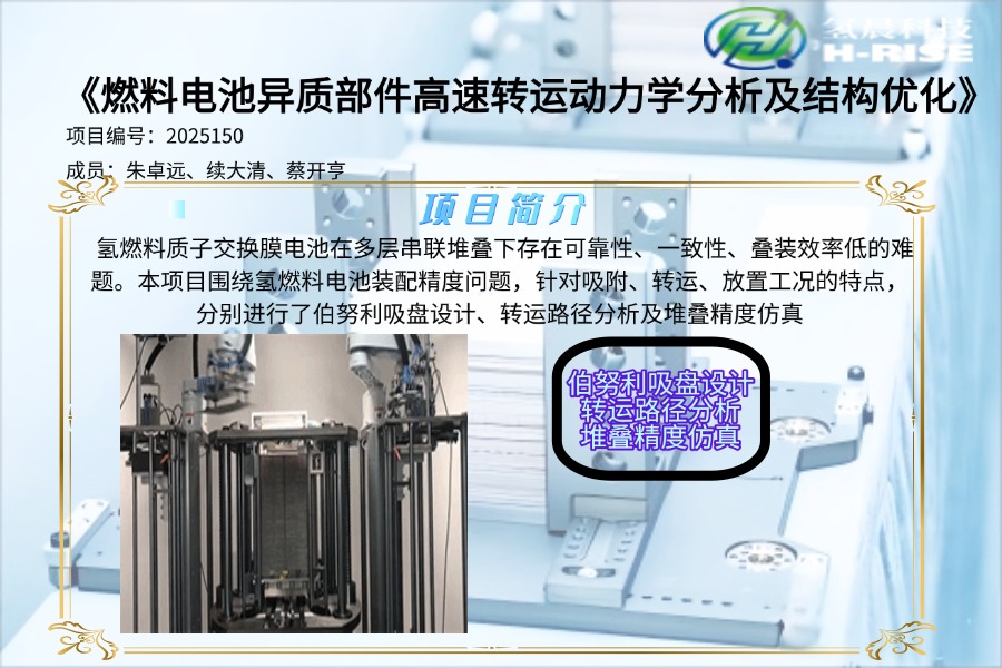 目前,质子交换膜燃料电池是目前技术成熟度最高、应用最广泛的一种燃料电池。大功率燃料电池电堆包含数百副金属极板、膜电极弱刚性薄板部件层叠装配,为保证单电池一致性和密封,对装配精度要求极高。在实际的工业装配过程中,常常采用机械臂加真空负压吸附进行这一重复的转运和定位操作,由于电堆制造精度、效率难兼顾,存在着吸附不牢,叠装不准,节拍不快的技术难题,本项目拟进行有关真空吸附转运以及堆叠过程中针对极板和电极薄板的研究,以提高效率,延长电池寿命。