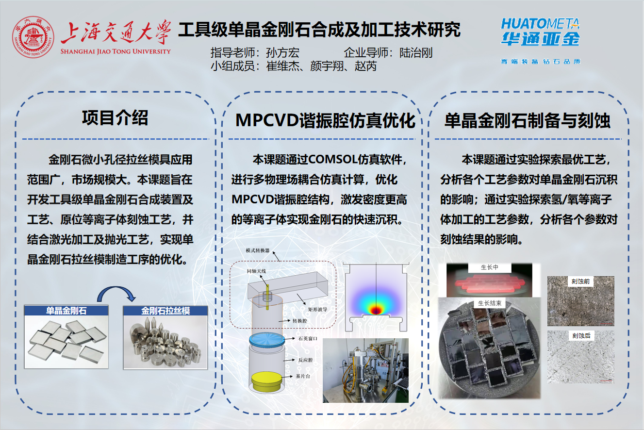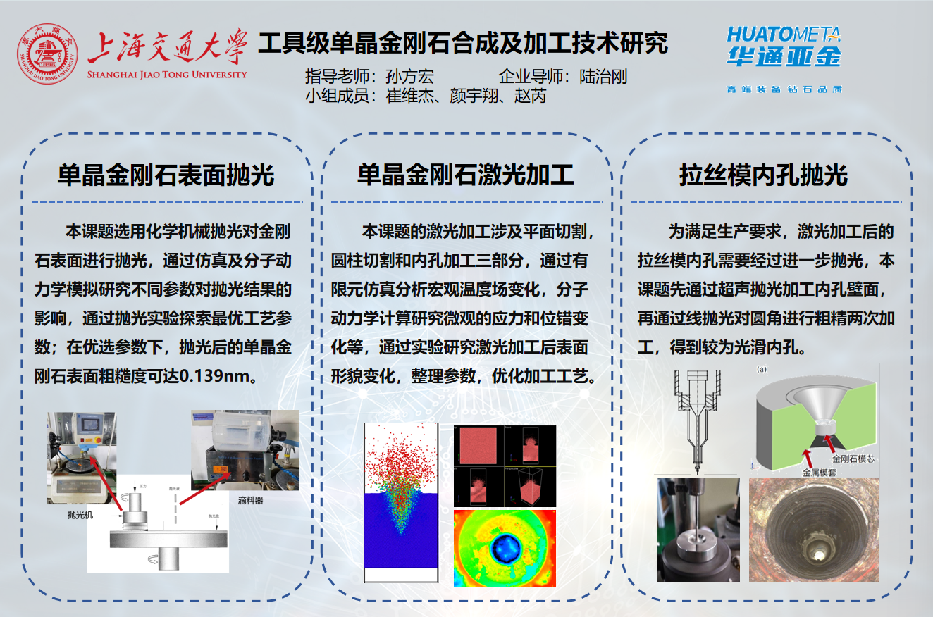针对上述问题,本课题旨在开发工具级单晶金刚石合成装置及工艺、并结合等离子体刻蚀工艺、激光加工和抛光工艺,实现单晶金刚石拉丝模制造工序的优化配置。