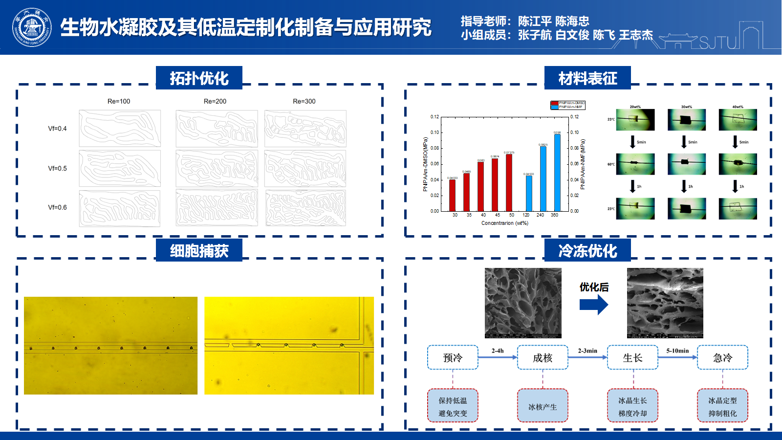 (4) 开发新型水凝胶制备体系: 创新性引入定向冷冻技术,通过控制冰晶生长方向构建各向异性多孔结构。增强水凝胶的机械稳定性,形成有利于细胞黏附的表面特性,使材料在温度调控下表现出更灵敏的形变响应。