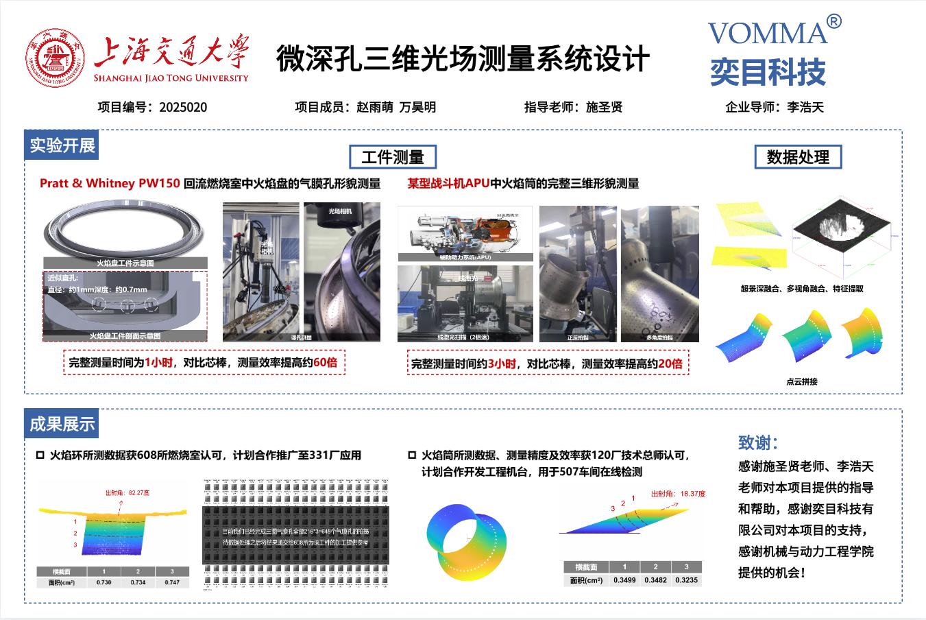 2.测量结果获企业认可并计划推广应用:该项目与120厂,608所和624所展开合作,对火焰筒、火焰盘和涡轮叶片上的气膜孔展开了测量,并深入现场考察、交流,为实际设计与生产提供了重要的参数指导,并持续推进车间实时测量应用。