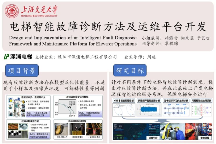 据统计,中国电梯保有量全球第一,总计1063万台,其中约110万台服役超15年。如此庞大的基数和超长服役时间条件下,如何保障电梯安全健康运行至关重要。然而,传统人工定期维护检查无法满足安全可靠运行的迫切需求,电梯事故甚至重大伤亡在各类特种设备中的占比一直位列前三。智能运维是解决上述挑战最有潜力的技术方案,也是电梯设备智能化的发展趋势。因此,本项目拟开展电梯智能故障诊断方法及运维平台开发研究。