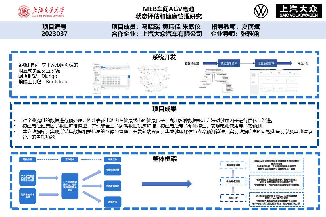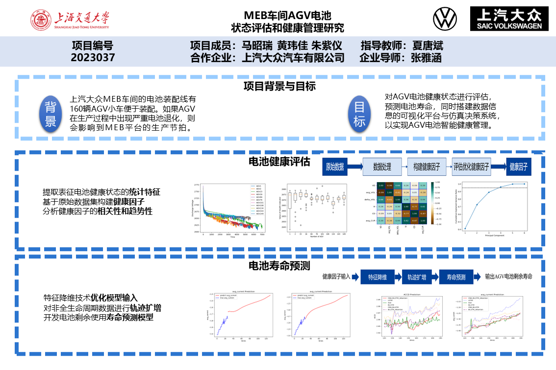 上汽大众MEB车间的电池装配线有160台左右中型AGV导引车服务于新能源汽车电池装配过程。由于生产线环节环环相扣,如果AGV在生产过程中出现严重电池退化,则会导致生产工序无法正常运行,进而会影响到MEB平台的生产节拍。因此,需要有效利用MEB车间的大量工业数据,通过多种算法对AGV电池的健康信息进行整合与分析,提升数据的利用效率,提高AGV电池健康管理模式的智能化水平;同时,需要建立有效的电池健康信息与过程数据管理系统,实现数据采集、管理、可视化呈现等功能,最终实现AGV电池健康管理的数字化与信息化。