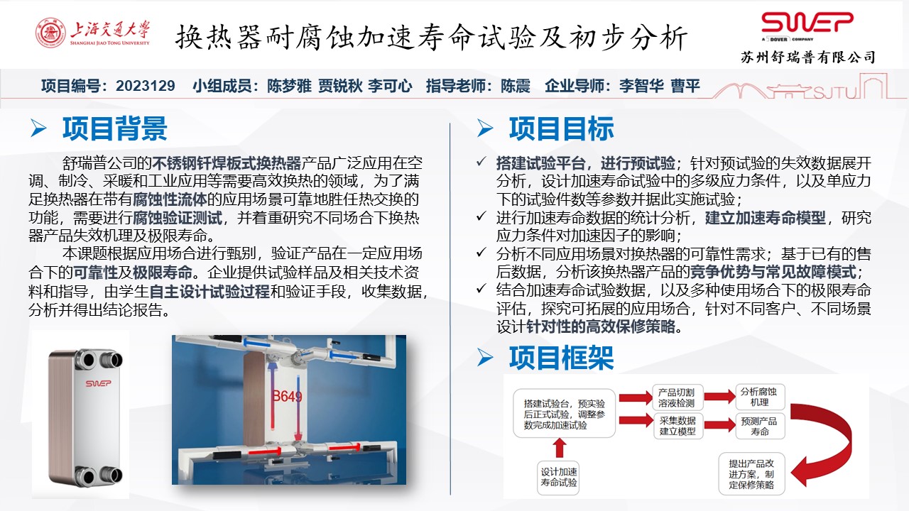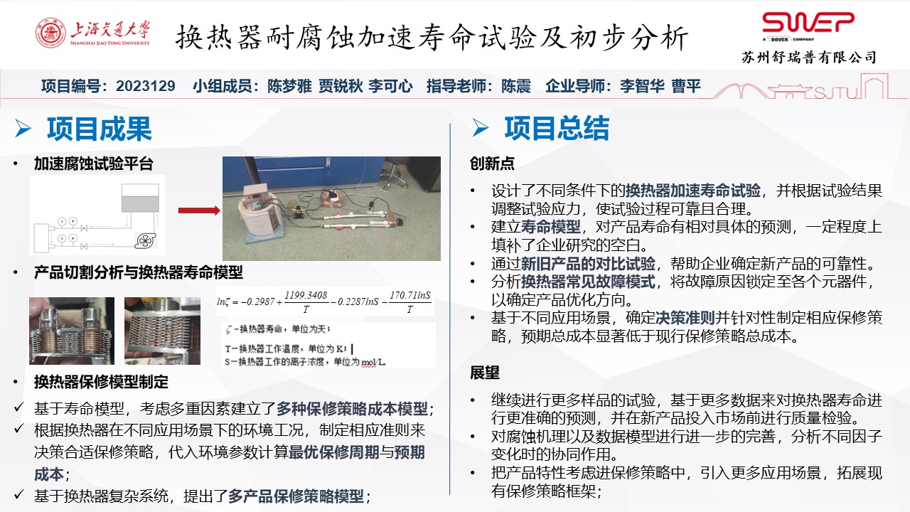 1、设计了不同条件下的换热器加速寿命试验,并根据试验结果调整试验应力,使试验过程可靠且合理。