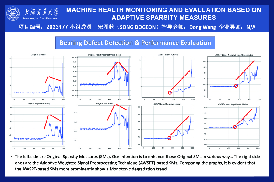 The project centered on the exploration and development of an innovative Adaptive Weighted Signal Preprocessing Technique (AWSPT)-based Sparsity Measure (SMs). The principal intention was to refine Machine Health Monitoring (MHM) practices by enhancing the efficiency and effectiveness of early fault detection systems in rotating machinery.